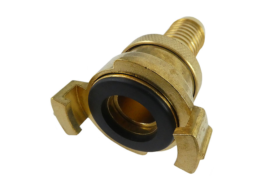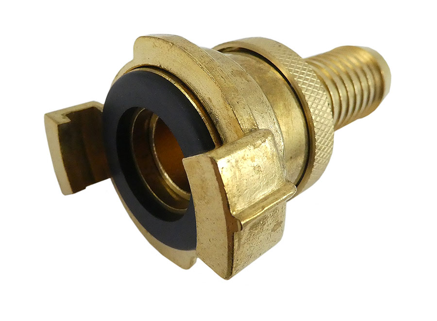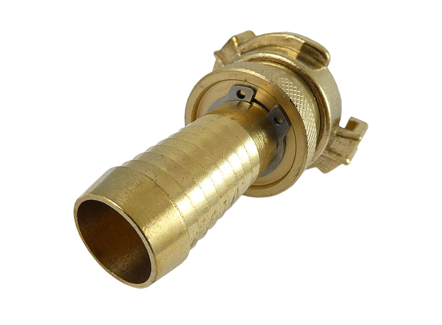 Saug-Hochdruckkupplung mit Dichtung. Schlauchkupplungen finden ihren Einsatzbereich bei Anlagen, die mit gasförmigen oder flüssigen Materialien versorgen werden müssen. Diese Kupplung besteht aus Messing und ist mit einem Nachstellring ausgestattet.