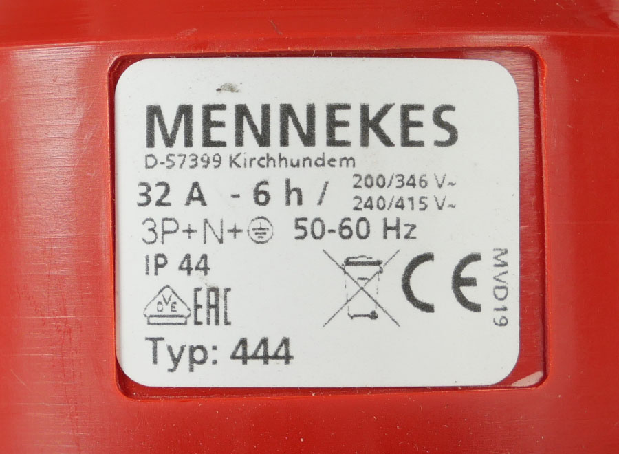 MENNEKES Anbaugerätestecker CEE 5 x 32A rot schräg