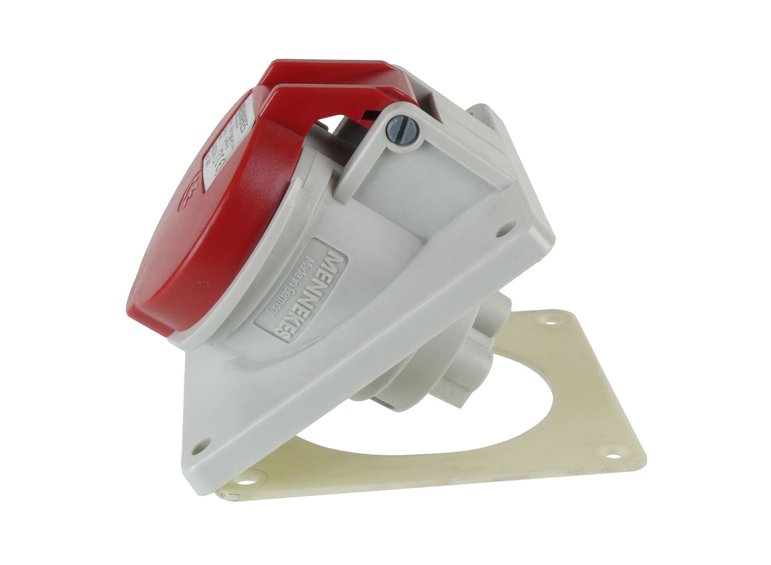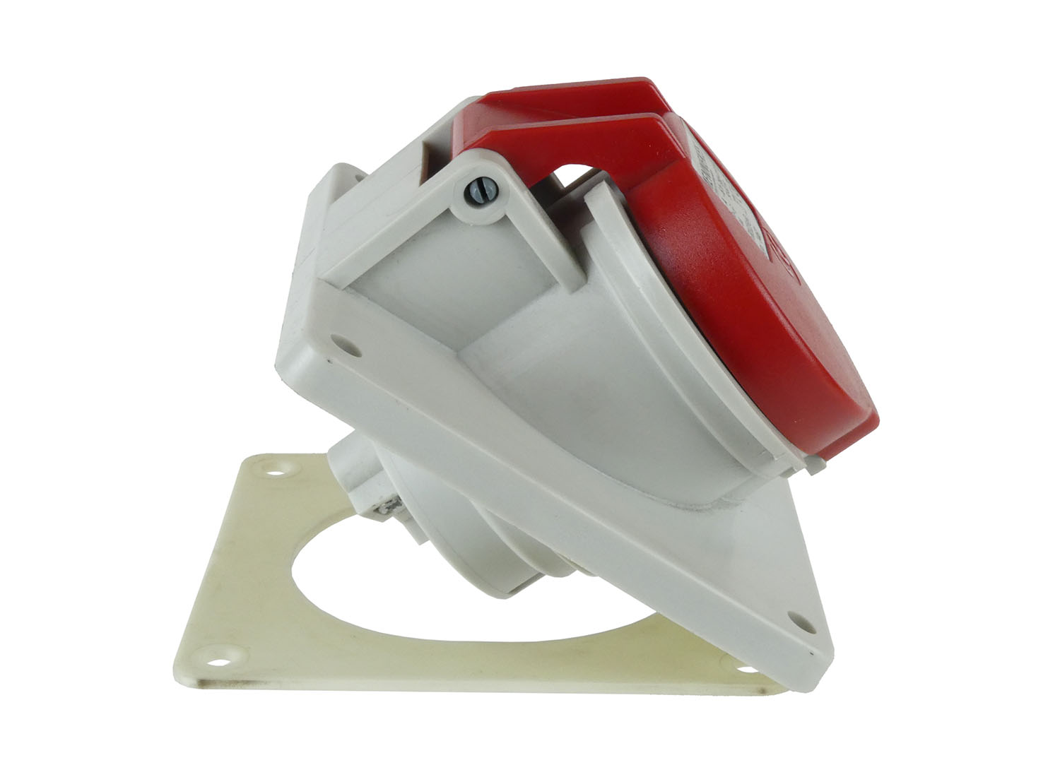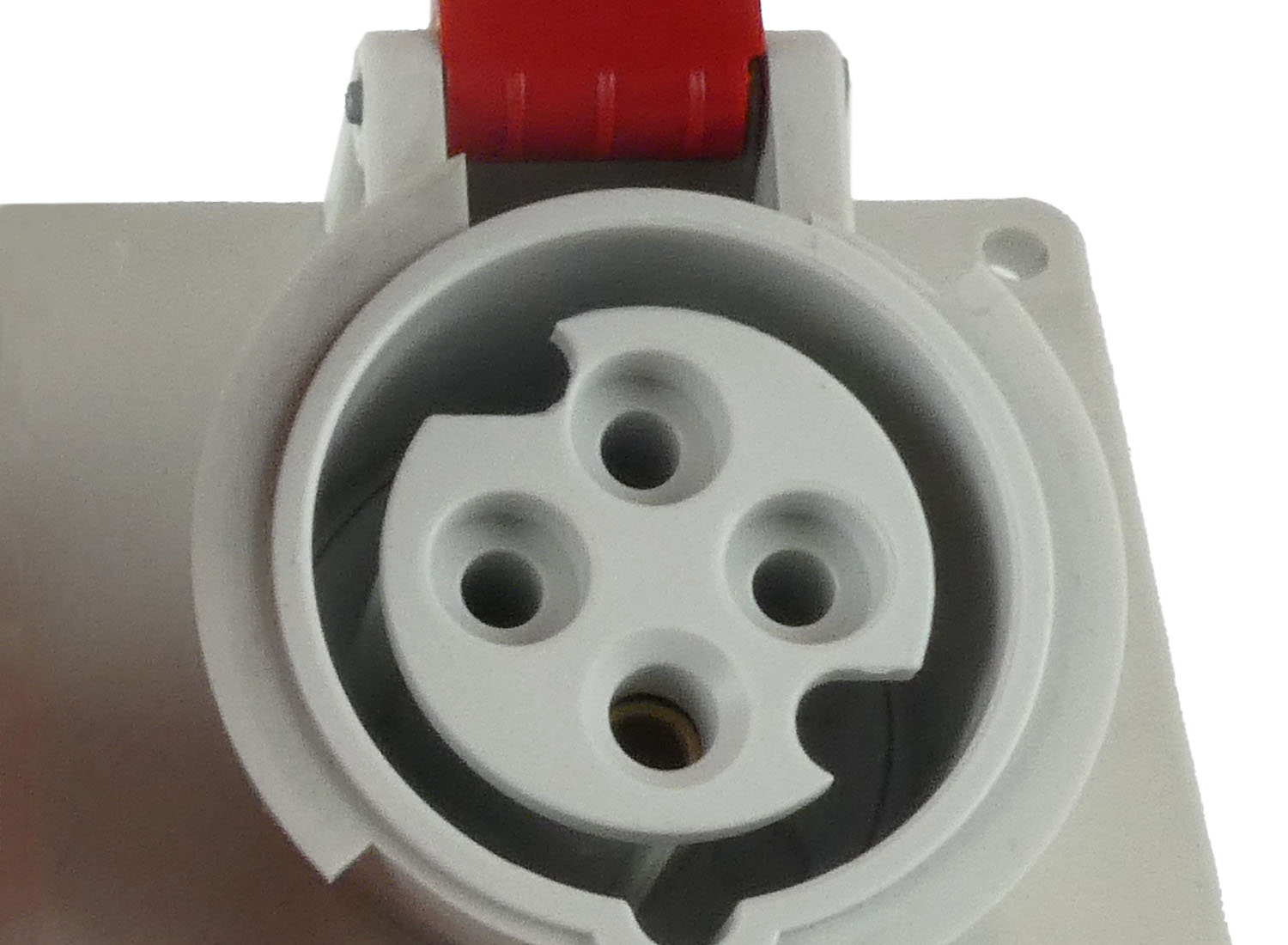 Anbausteckdose PFT schräg - CEE 4 x 16 A mit rotem Deckel.