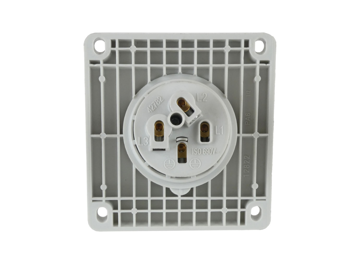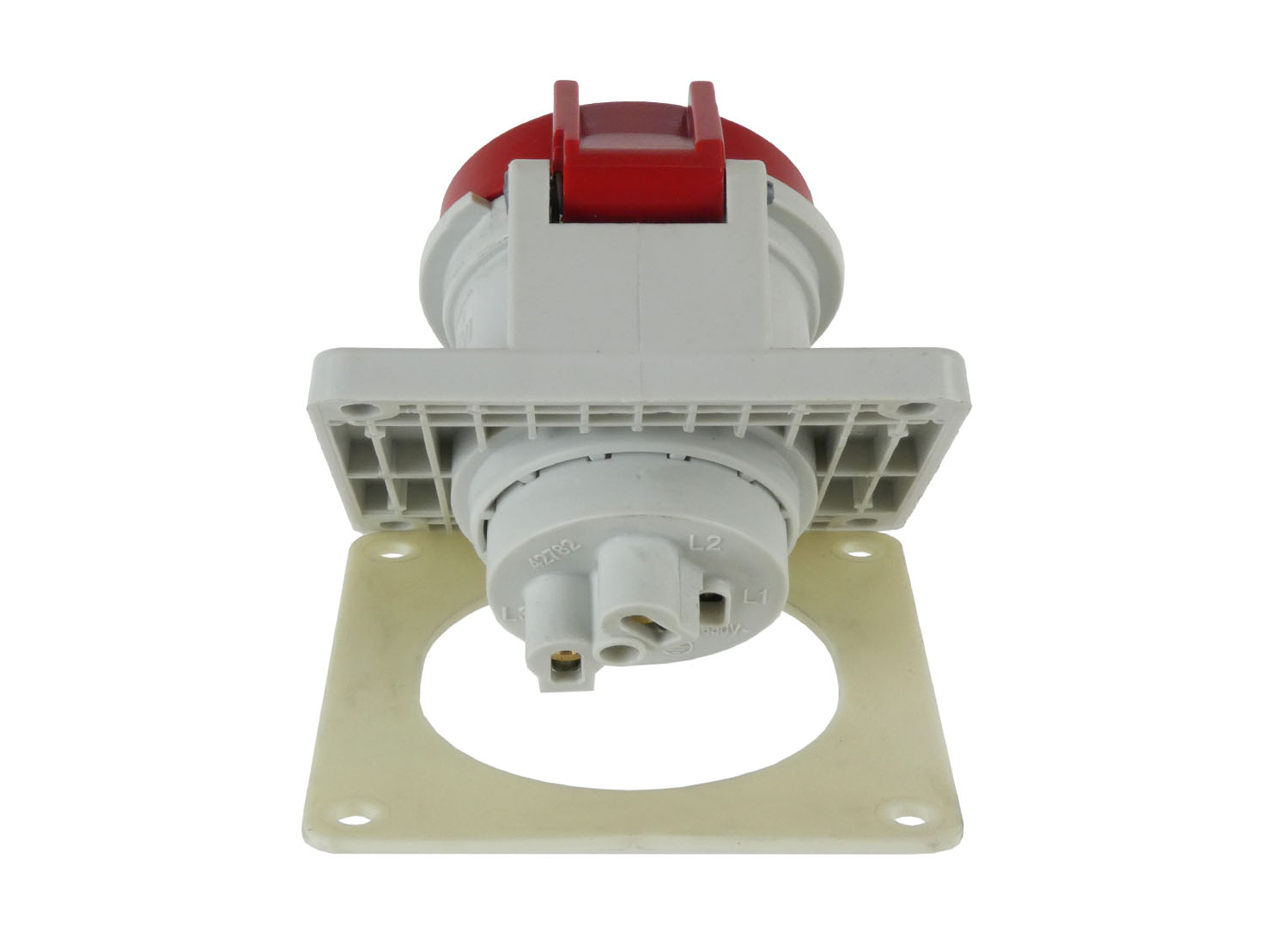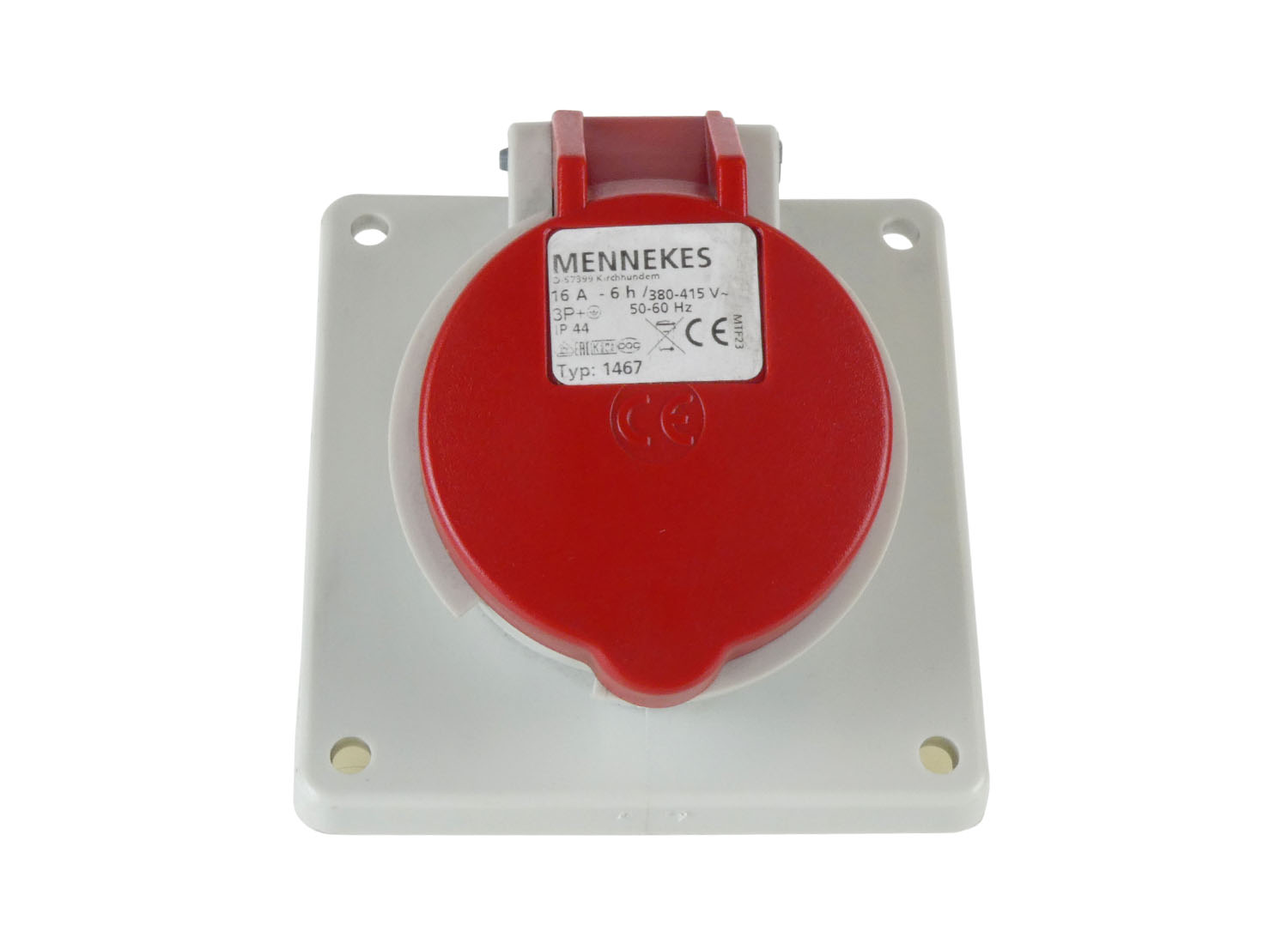 Anbausteckdose PFT schräg - CEE 4 x 16 A mit rotem Deckel.