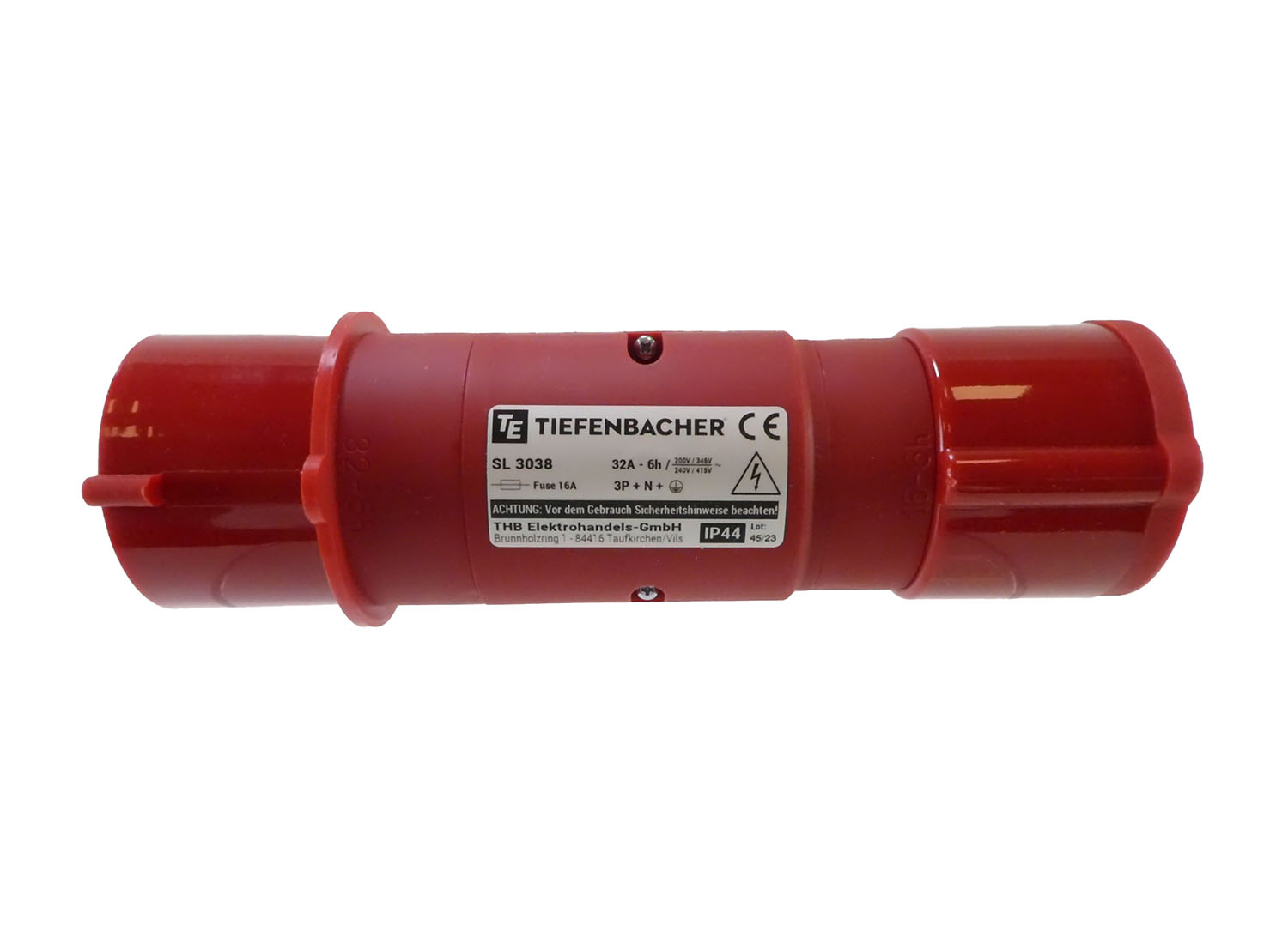 CEE-Adapter mit Phasenwender Stecker 32A auf Kupplung 16A 3 Stück Feinsicherung 16A träge. Der CEE Adapter / Reduziersteckvorrichtung ermöglicht ein sofortiges und problemloses Zusammenstecken von unterschiedlichen CEE-Steckverbindungen oder Schuko-Steckverbindungen. Bei Reduziersteckern sind Zwischensicherungen eingebaut, um eine vorschriftsmäßige Absicherung zu gewährleisten. Dadurch entfällt zeitaufwendiges Umklemmen von Steckverbindungen. Modell SL3038