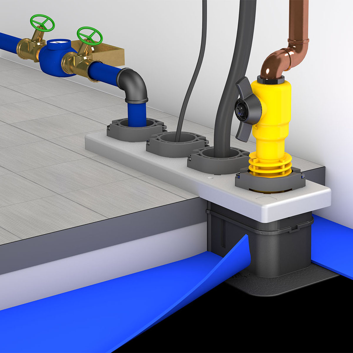 MSH Basic FUBO BHP Mehrsparten-Bauherrenpaket für Gebäude ohne Keller ist eine gas- und wasserdichte (bis 1,0 bar) Hauseinführung zum gemeinsamen Einführen und Abdichten aller Versorgungsleitungen (Strom, Wasser, Telekommunikation, optional Gas) über eine Durchführung.