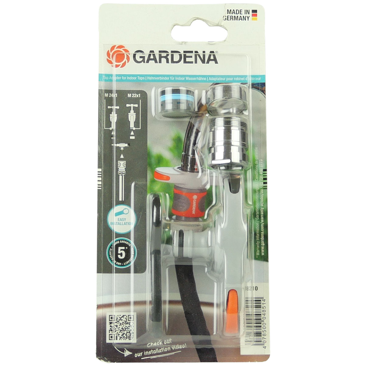 Der Hahnverbinder / Adapter ermöglicht eine Bewässerung auf Balkon oder Terrasse durch den Anschluss an Indoor-Wasserhähne. Das mühevolle Tragen von Gießkannen zur Bewässerung gehört der Vergangenheit an. Der Schlauchadapter wird an einen Wasserhahn, z.B. Küche oder Badezimmer, angeschlossen. Die Installation ist schnell und einfach. Neben dem beiliegenden Schraubenschlüssel benötigt man kein weiteres Werkzeug. Der Adapter ist kompatibel mit allen gängigen Wasserhähnen mit M24x1 Innen- oder M22x1 Außengewinde (nicht geeignet für drucklose oder Niederdruck-Warmwasseraufbereiter). Der Wasseranschluss-Verbinder ist frostsicher und UV-stabil.