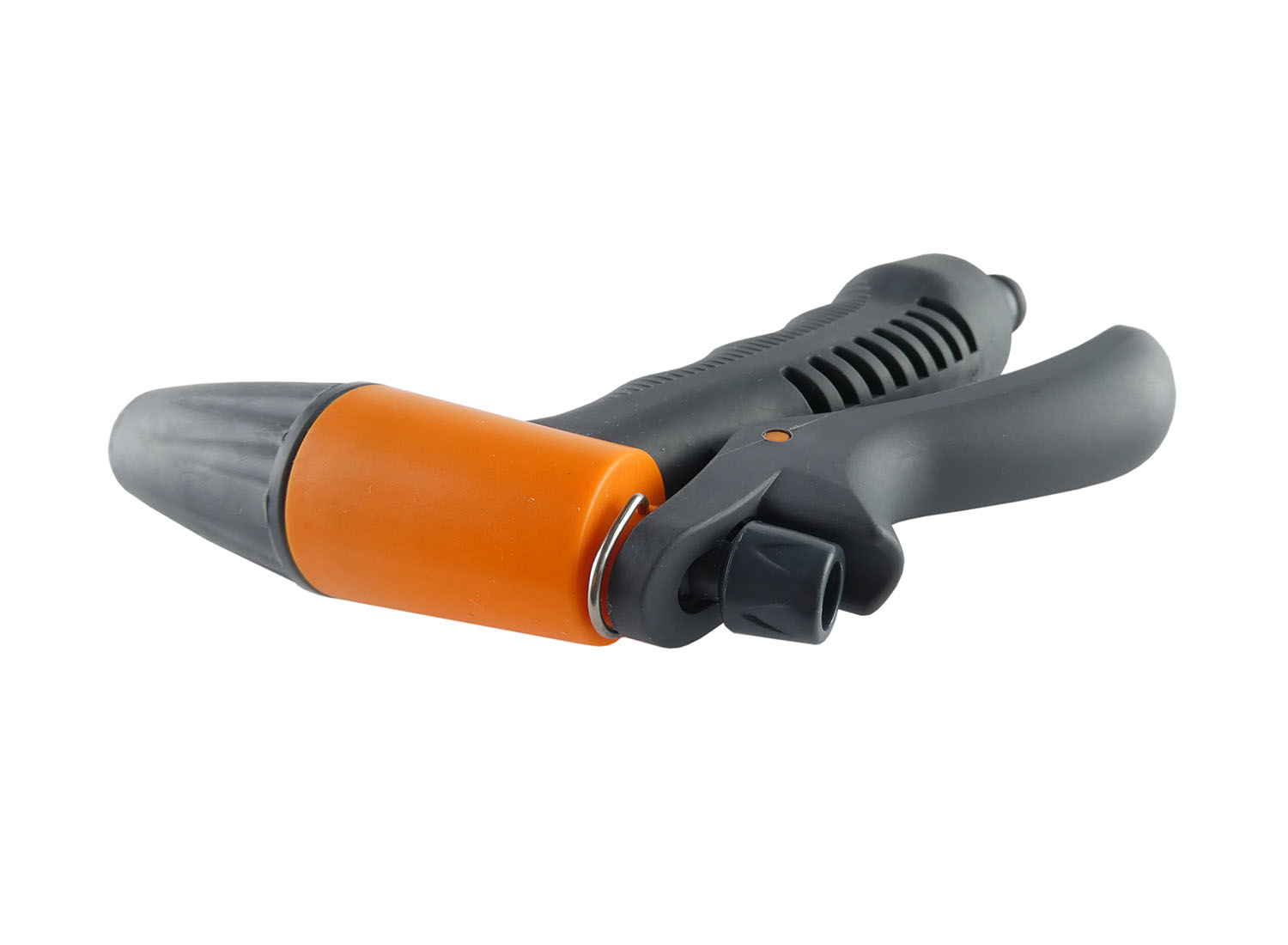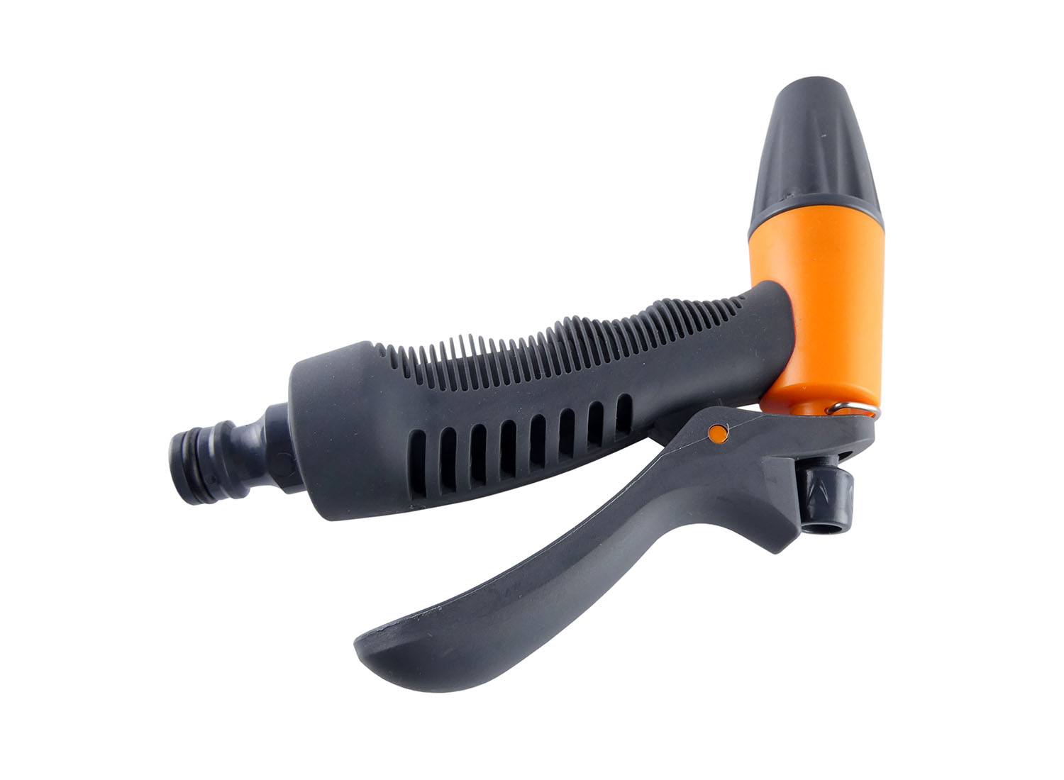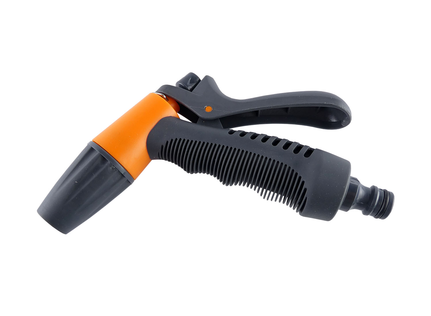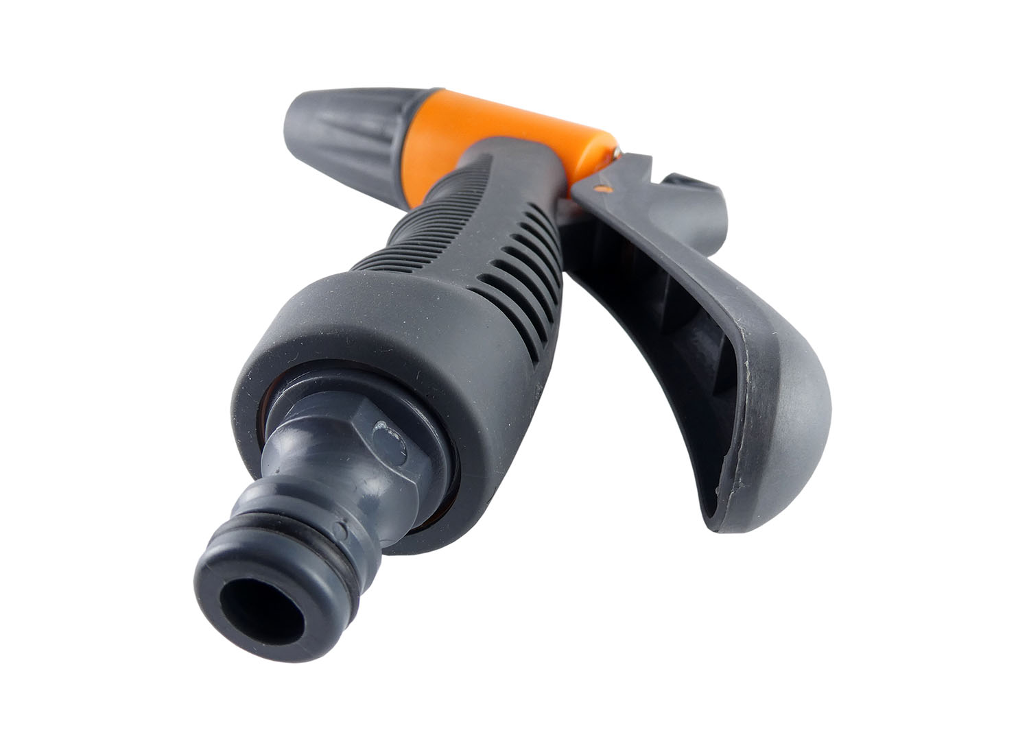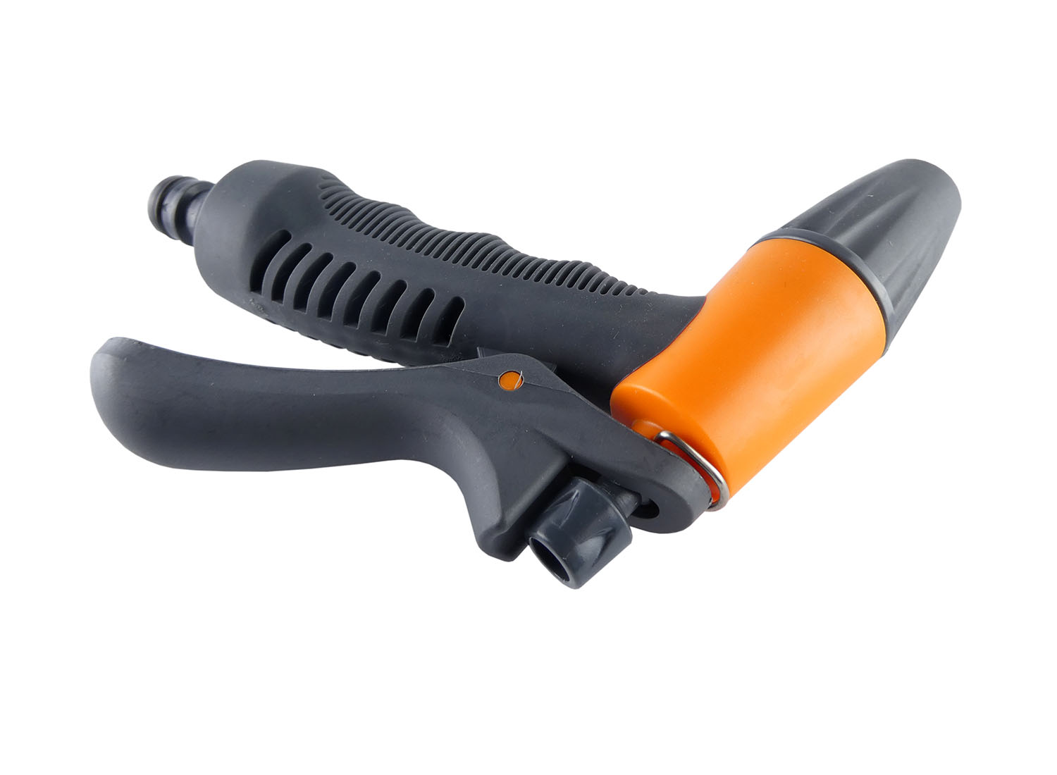 Die Spritzpistole / Spritzdüse passend zu allen gängiggen Steck-Kupplungs-Systemen (z.B. Gardena) kann vielseitig verwendet werden. Egal ob im Garten oder auf Baustellen. Diese Sprühpistole hat eine spezielle Kunststoffbeschichtung, die auch bei Nässe für einen optimalen Griff sorgt. Die Schlauchpistole hat eine stufenlos einstellbare Düse von Strahlfunktion bis Sprühfunktion. Die weichen Lamellen am Griff sorgen für ein sehr angenehmen Griffkomfort.