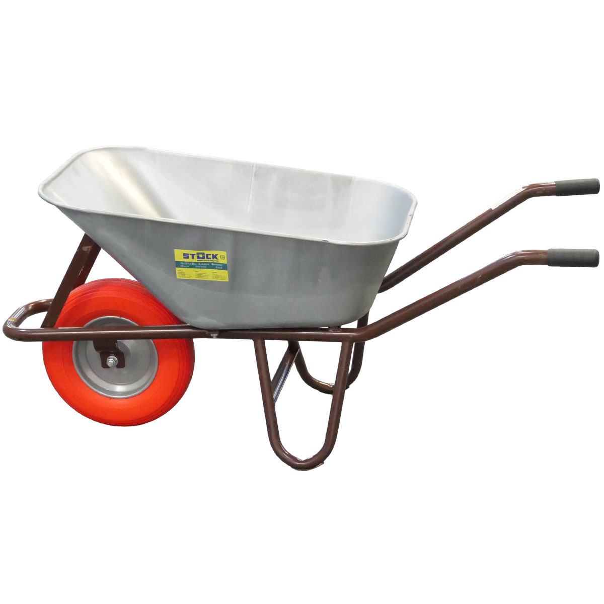 MÜBA Betonkarre / Tiefmuldenkarre 90 L mit polymerem Rad und Stahlfelge, hat ein Gewicht von 18.8 kg und ist GS-geprüft. Die Schubkarre ist hergestellt aus Stahl, teilweise verzinkt oder lackiert. Sie ist nur 60 cm breit mit Kufenverstärkung, hat eine Tragfähigkeit von 200 kg. Der Raddurchmesser beträgt 400 x 100 mm und hat ein Kugellagerrad. Die Muldenstärke beträgt 1,25 mm und die Muldenverstärkung ½ Drahteinlage im vorderen Bereich.