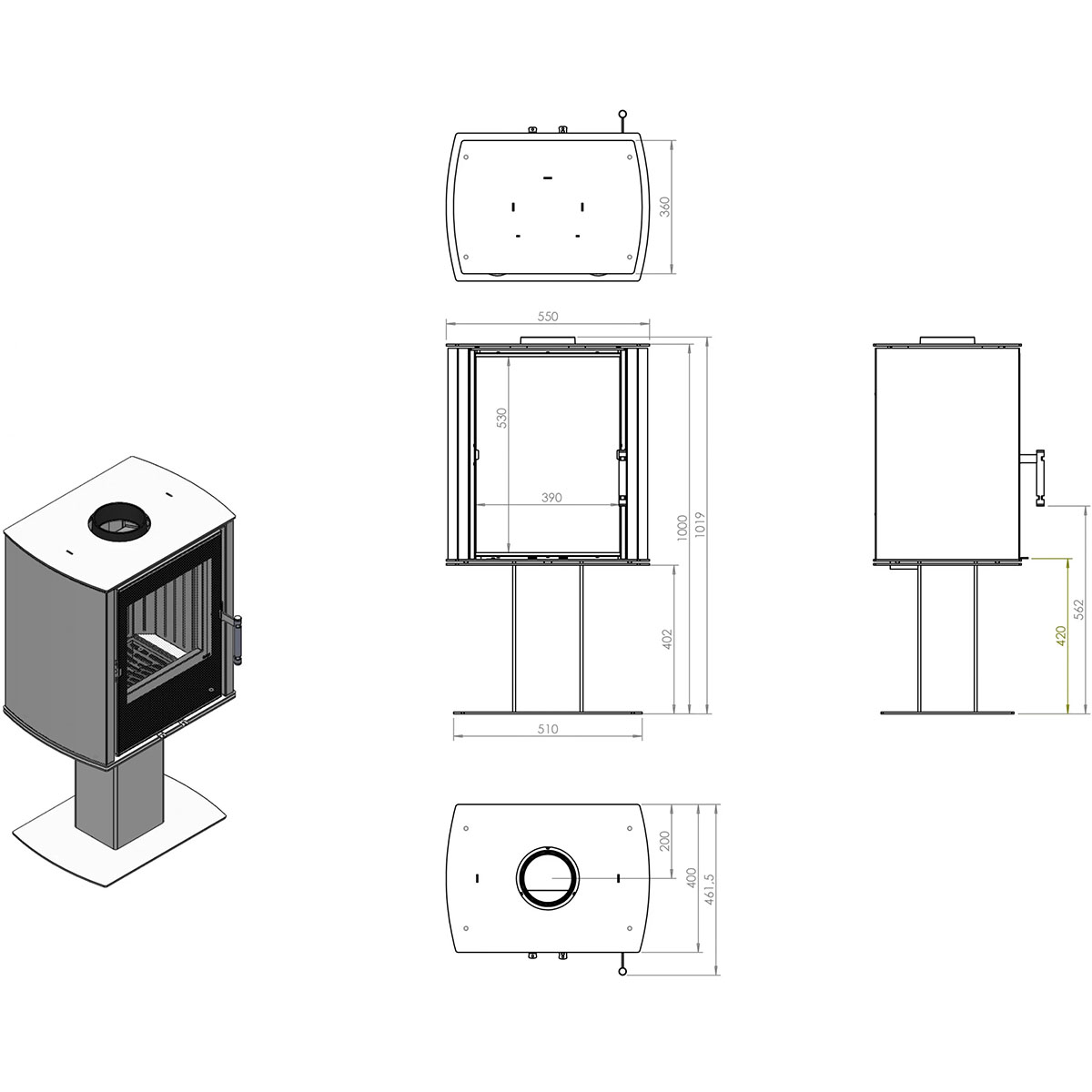 | Rauchrohranschluss: | hinten, oben, ⌀ 150 mm |