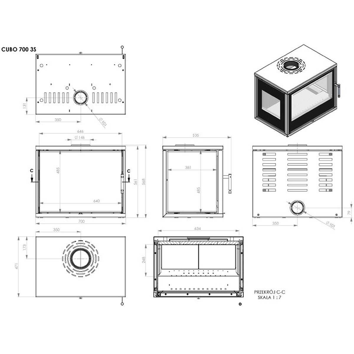 Der freistehende Kamin CUBO CF3S-700 (dreiseitige Verglasung) verbindet klares, minimalistisches Design mit leistungsfähiger Technik - große Sichtscheibe, robuste, vertiefte Akuceram-Brennkammer (verbesserte Verbrenneffizienz und reduzierte Emissionen) und flexible Anschlussmöglichkeiten für bestehende Feuerstellen und Lüftungsanlagen. Das optinonale automatische Lüftungssystem und zwei 100 mm Warmluftanschlüsse erlauben die Verteilung warmer Luft im Haus. Die externe Luftzufuhr ist hinten oder unten montierbar und kompatibel mit Lüftungsanlagen. Mit einem Drosselhebel lässt sich eine intuitive Verbrennungssteuerung regeln.