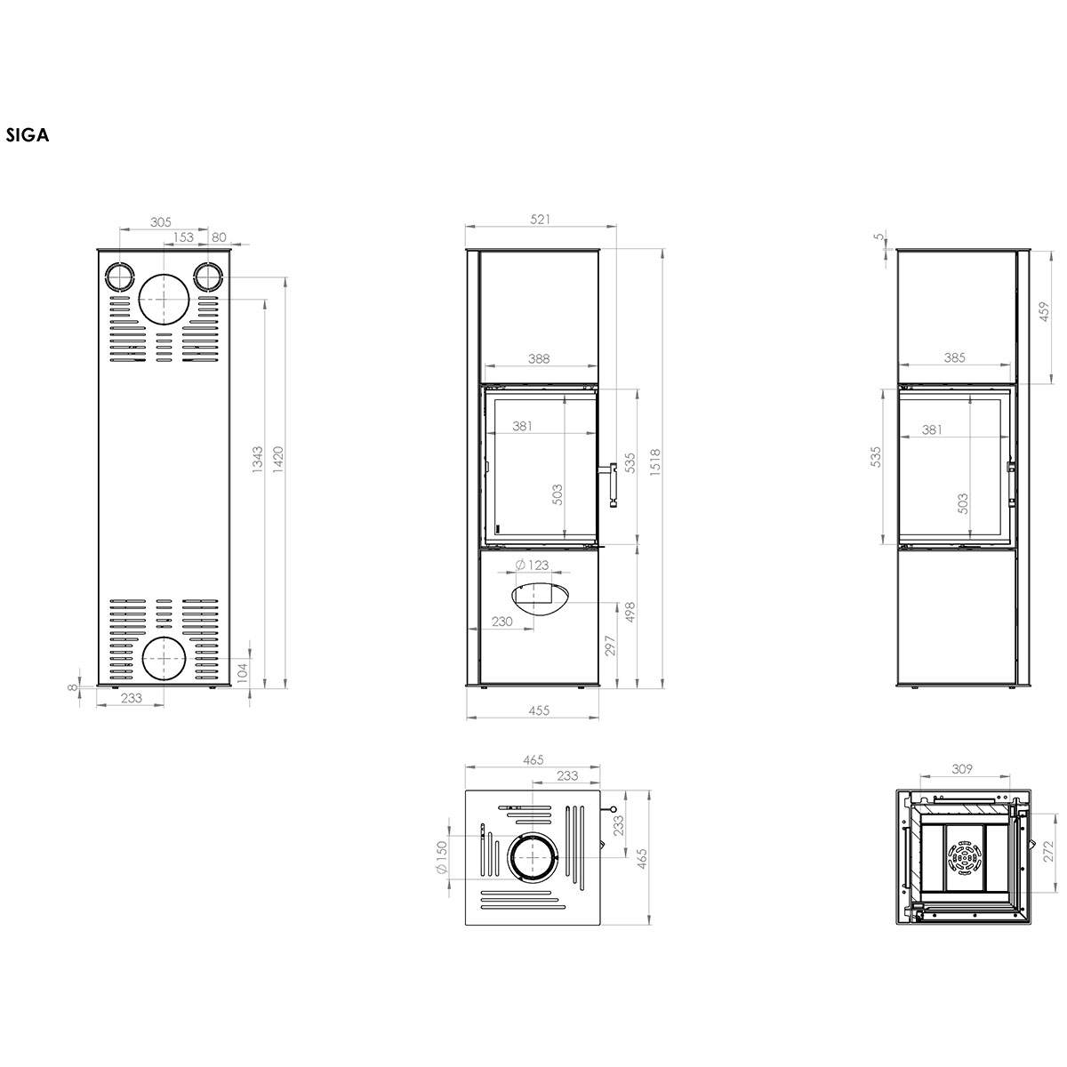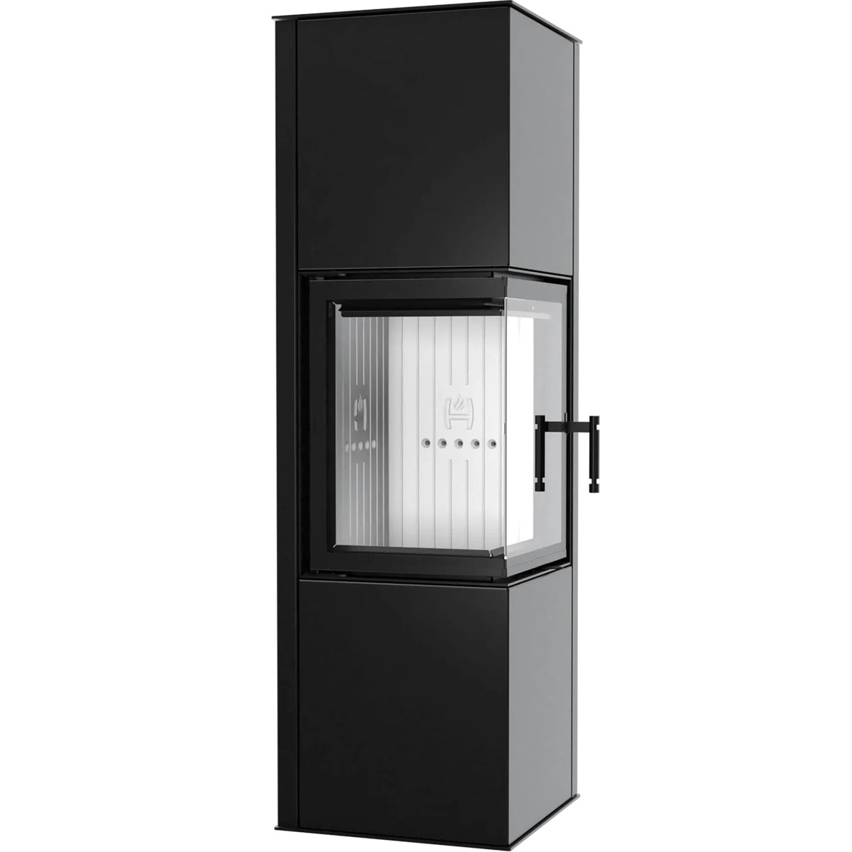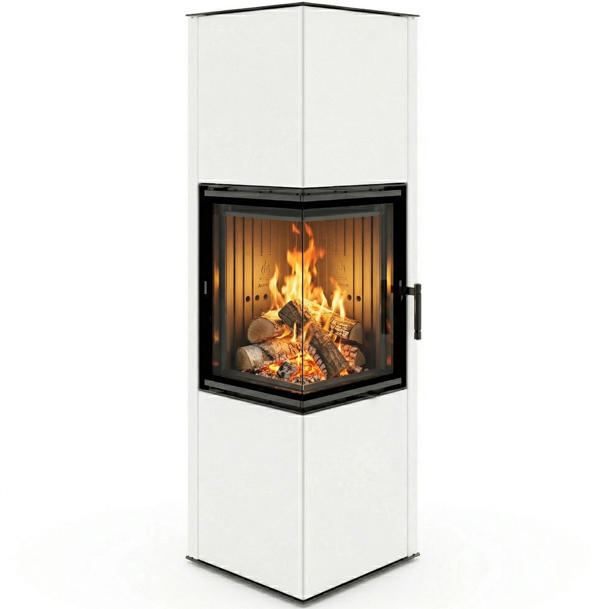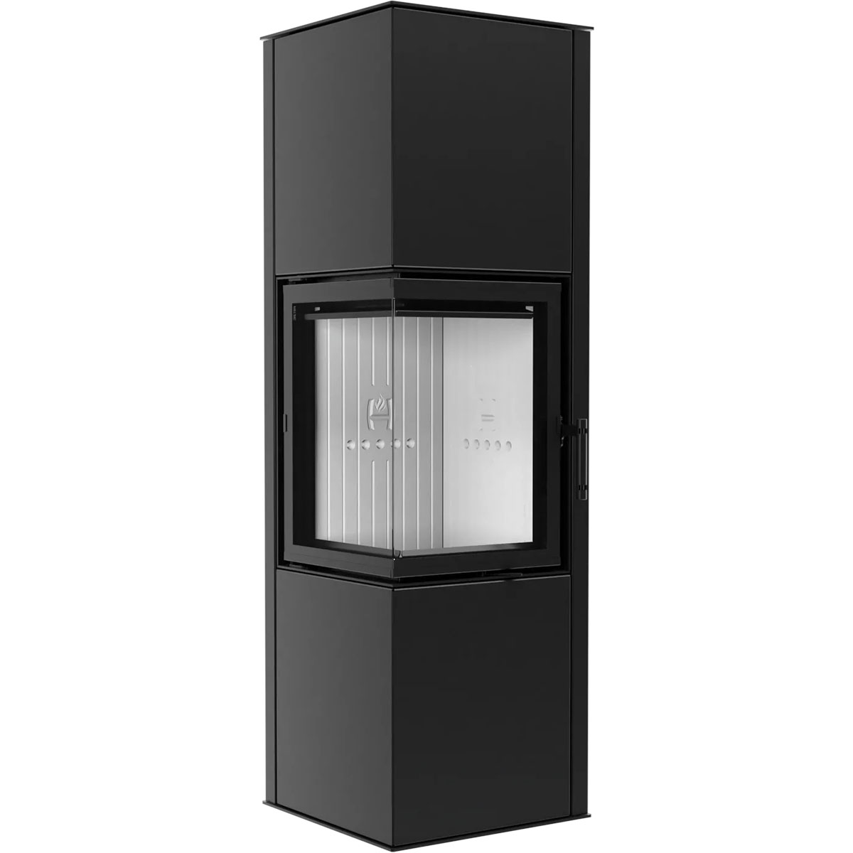 Der SIGA ist ein freistehender Eckkamin mit modernem Design und hohem Wirkungsgrad von bis zu 84%, ideal für kleine bis geräumige Räume, die effiziente Holzfeuerung und niedrige Emissionen verlangen. Der SIGA Kaminofen bietet durch sein ergonomisches Design, effiziente Belüftung der Brennkammer und externen Luftanschluss sichere Nutzung in Gebäuden mit mechanischer Lüftung. Überduchschnittliche Energie- und Emissionswerte dank der Dreistufen-Luftzufuhr, Abgasentzünder und leistungsstarker Scheibenspülung. Kompakte, rechteckige Bauweise mit Ecktüren ermöglicht eine spektakuläre Feueransicht bei geringer Stellfläche. Robuste Konstruktion aus hochwertigem Kesselstahl (P265GH), Brennkammer und Deflektor aus Accuceram für hohe Wärmespeicherung, abnehmbares Gusseisengitterrost und großzügige Aschewanne. Stahlrippen-Wärmeaustauscher und verlängerte Abgasführung erhöhen die Effizienz zusätzlich. Einfache Steuerung des Luftsystems über ein Drosselhebel unter den Türen für eine präzise Regulierung. Der Kamin SIGA entspricht allen Anforderungen von 15a B-VG, BlmSchV II.