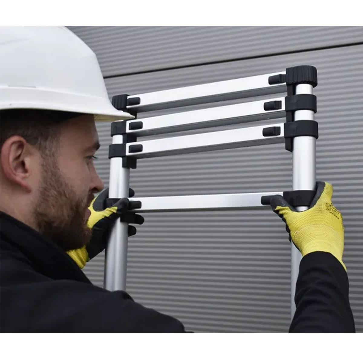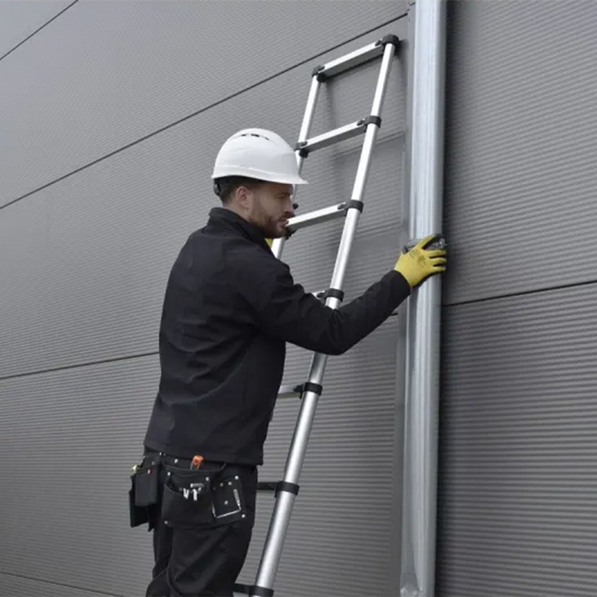 Die Teleskopleiter HOME Aluleiter ist praktisch und platzsparend.