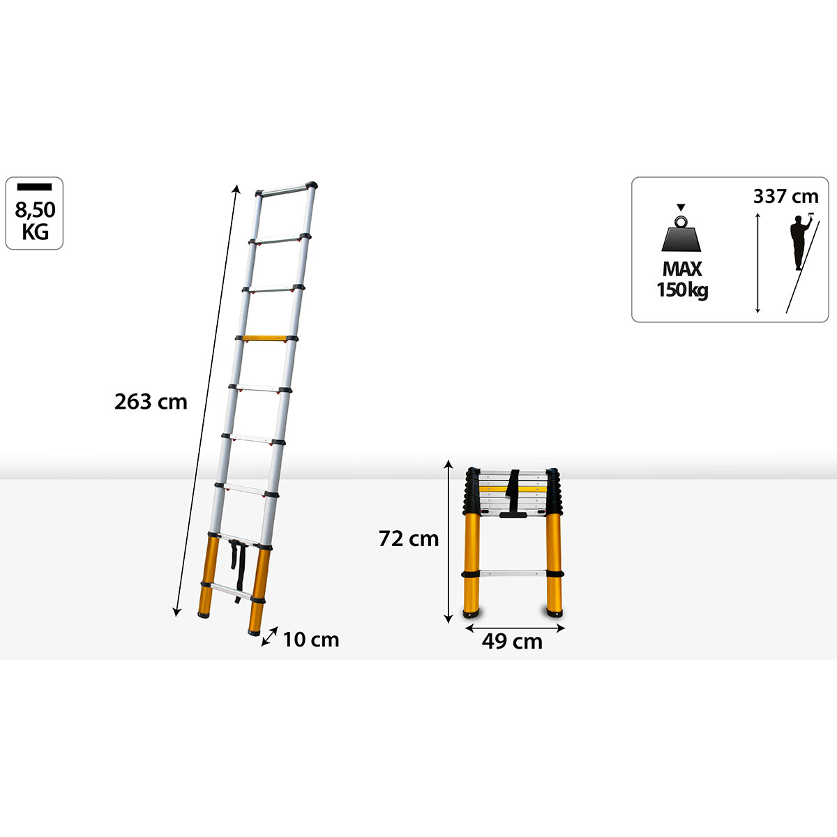 Drabest Teleskopleiter MAX PRO Aluminiumleiter 9 Stufen