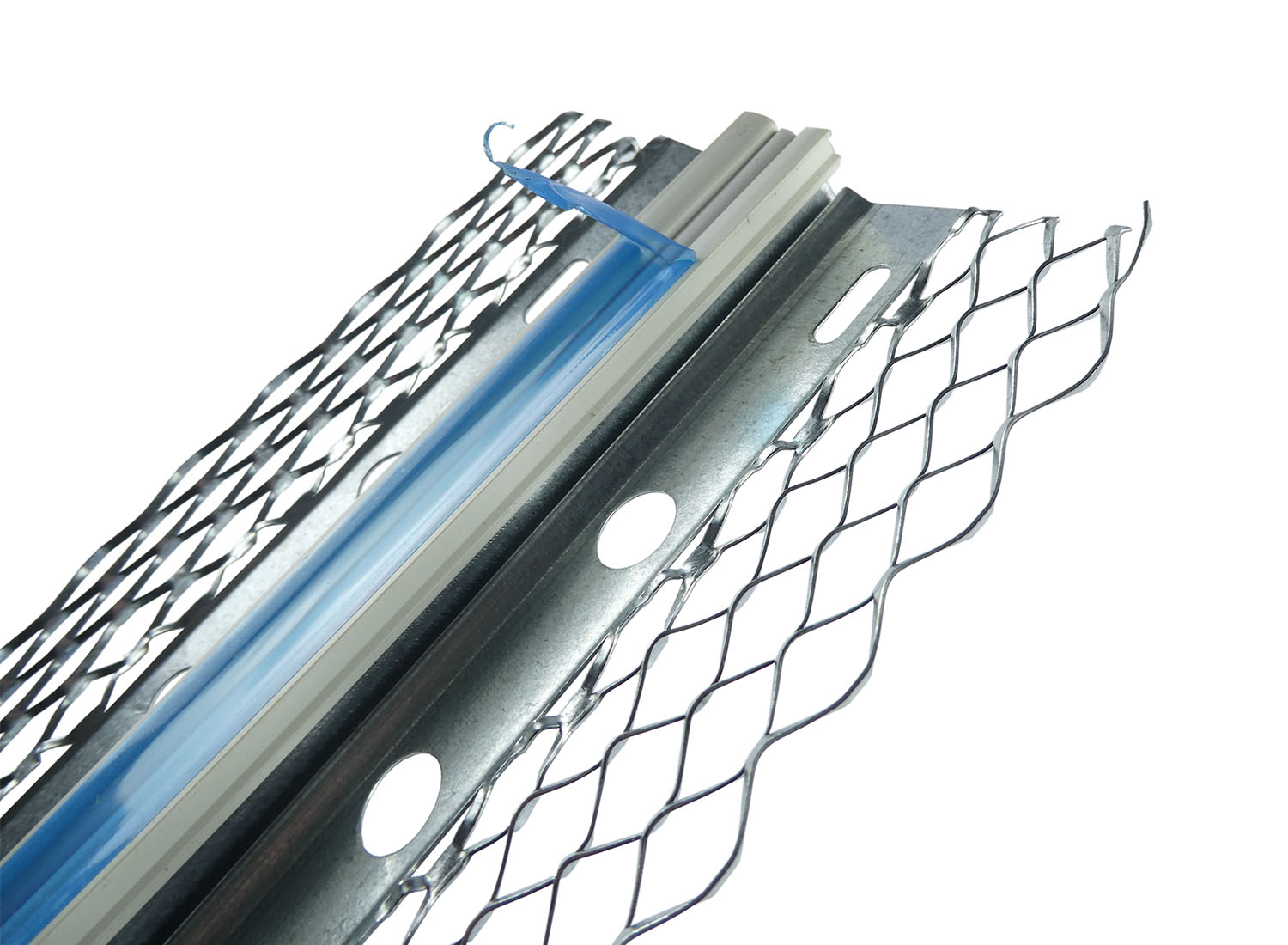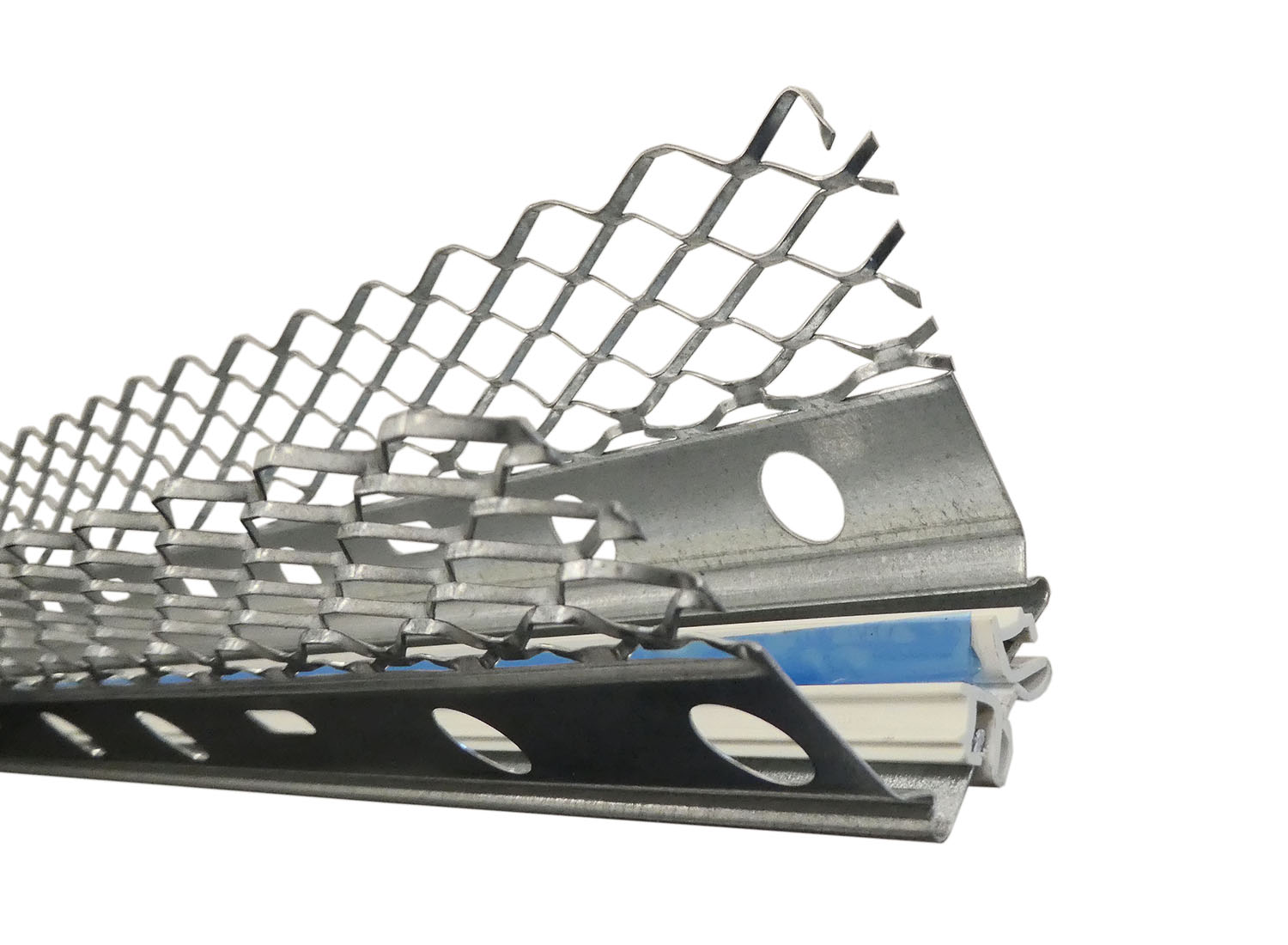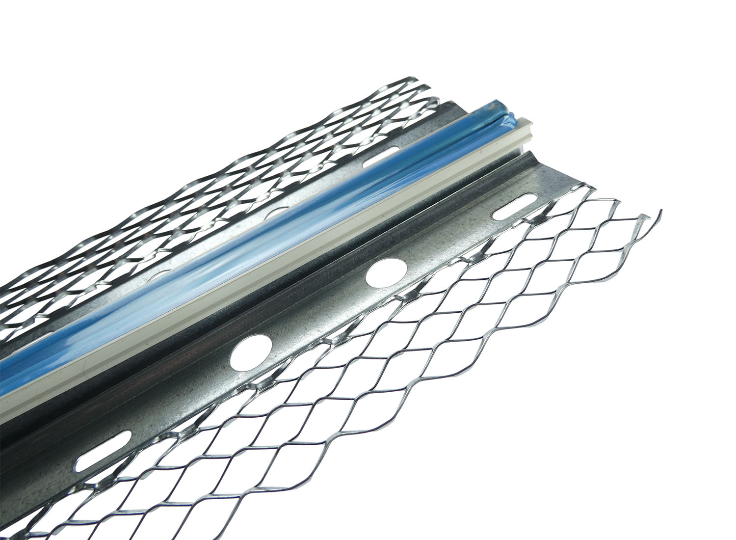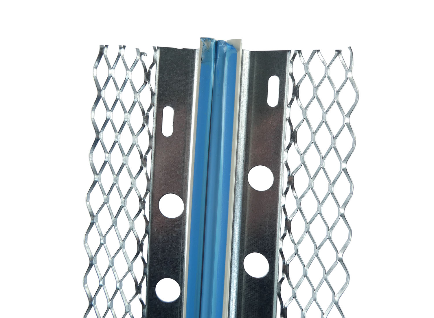 Dehnungsfugenprofil 300 cm Kombi für Fläche und Innenecke mit weißem flexiblem Mittelteil. Es wird zur Ausbildung von senkrechten Dehnfugen von + / - 3 mm eingesetzt. Das Dehnfugenprofil ist für die Verwendung bei allen Flächen aus Putz, Fliesen und Mauerwerk vorgesehen. Das Profil kann auch an Innenecken eingesetzt werden. Die Befestigung erfolgt mechanisch oder mittels Klebeputz auf der zu bearbeitenden Fläche oder Innenecke. Die Fertigstellung erfolgt nach dem Trocknen mit einer Putzschicht von 10 mm bzw. 15 mm Stärke. Die blaue Schutzfolie der Dichtung aus TPE kann anschließend entfernt werden.