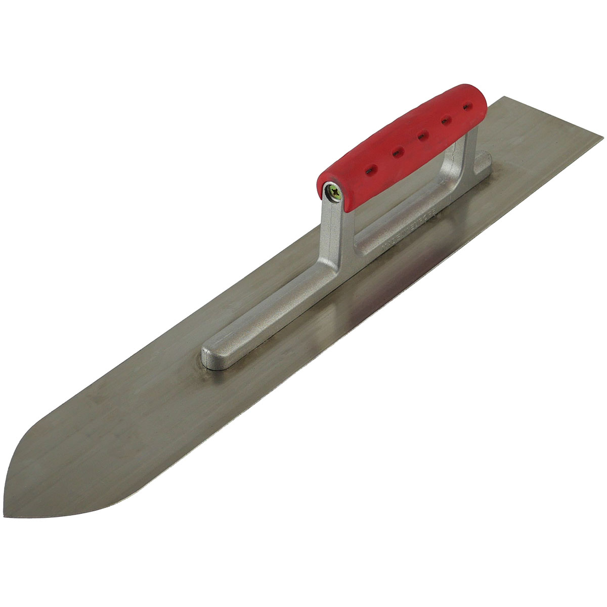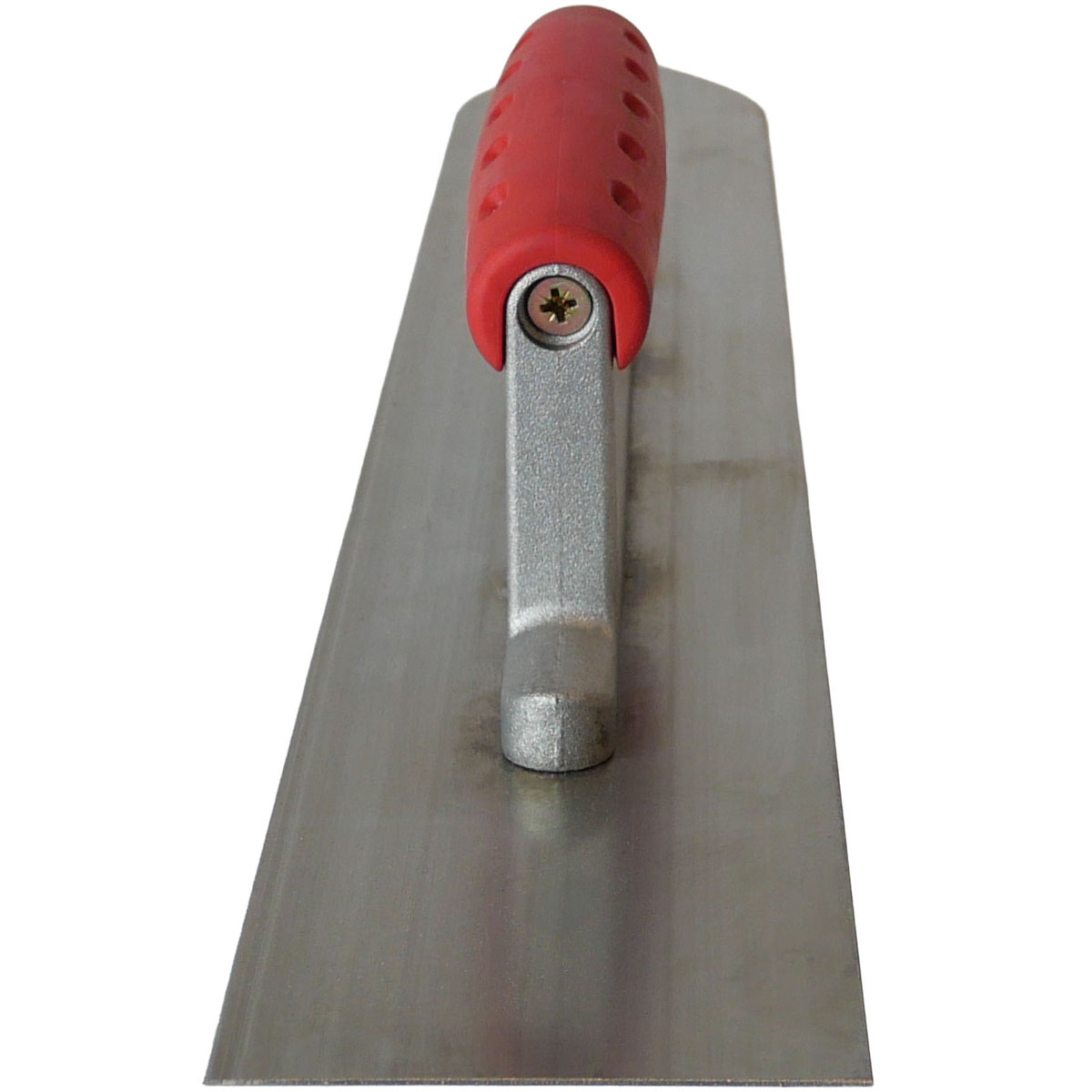 Bodenlegerkelle mit 2K-Griff 500 x 90 mm Blattstärke 1 mm verstärkte Ausführung in konischer Form und Spitze. Das Glättschwert wird zum professionellen, gleichmäßigen Verteilen und Vorglätten von Material auf dem Estrichboden oder Bodenausgleichsmaterial verwendet. Durch die Spitze kommt das Glättschwert optimal bis in die Ecken.