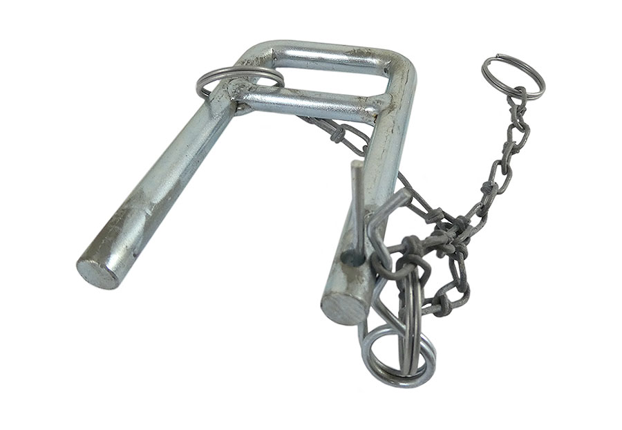 Verzinkter Klemmbügel mit Kette und Splintfeder für Auslaufbock mit Drehdurchführung Vaterteil (V-Teil) 50.