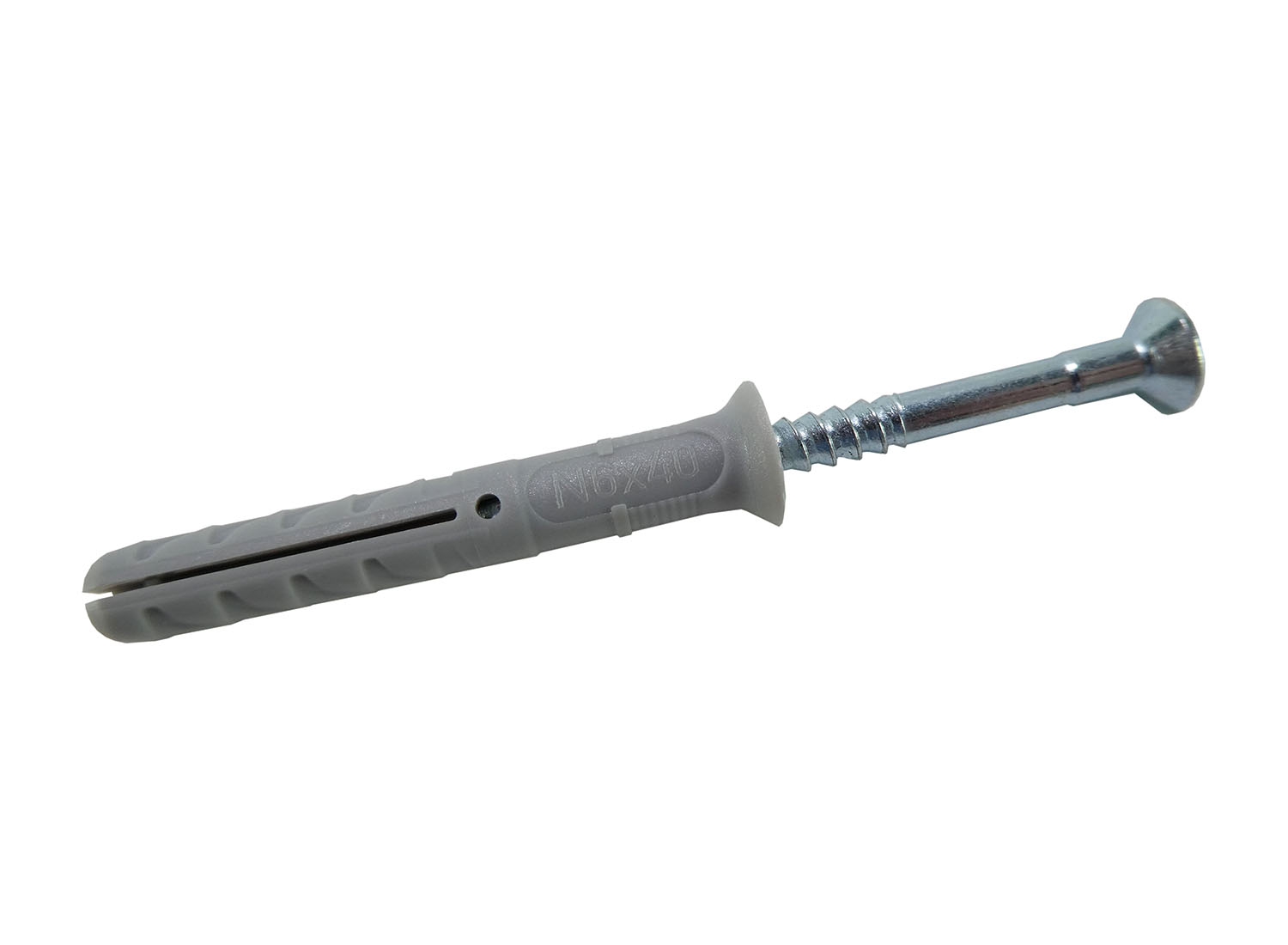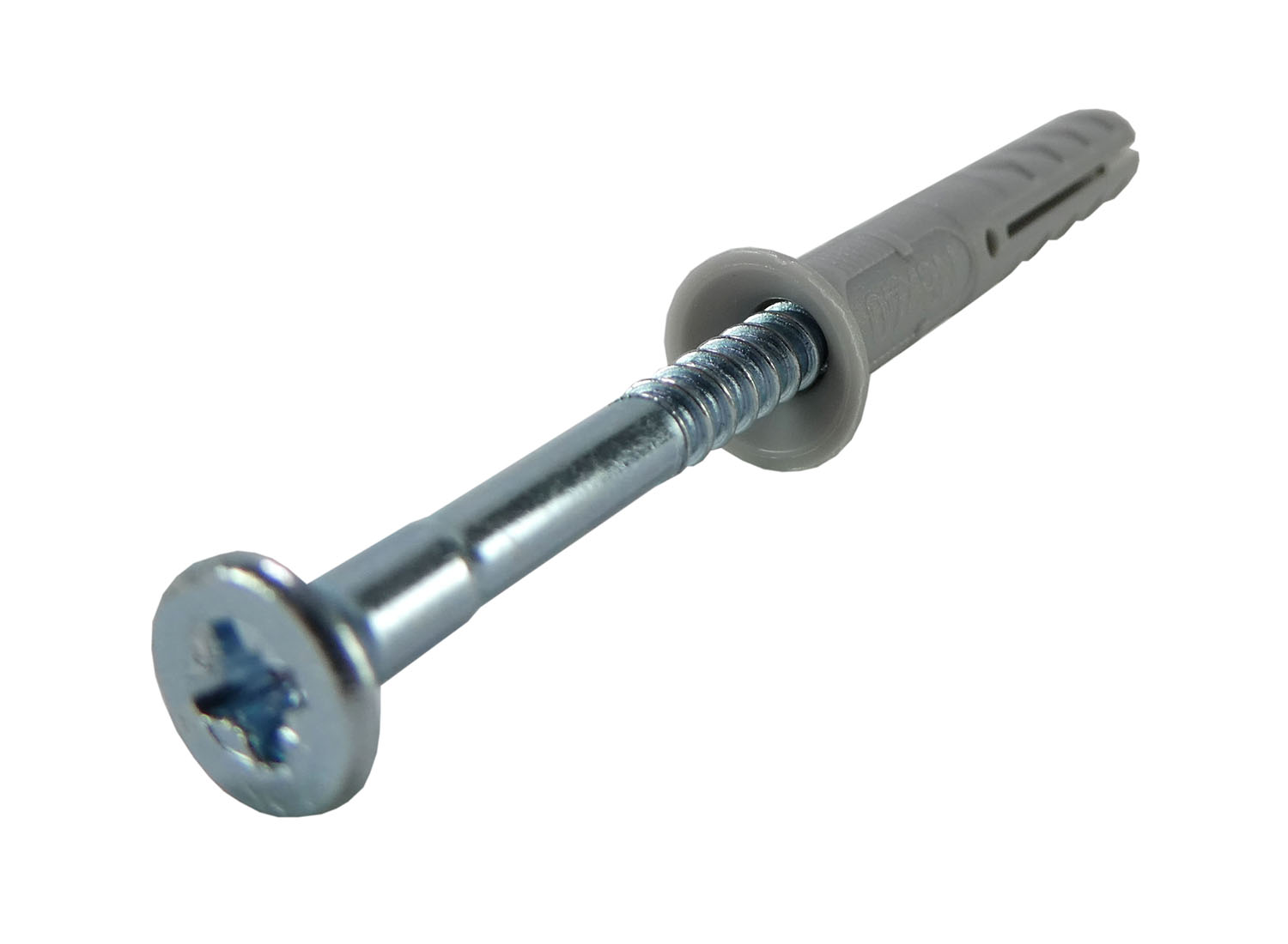 Nageldübel mit Senkkopf mit integrierter Einschlagsperre (verhindert vorzeitiges Aufspreizen des Dübels) ist ideal für Serienmontage (schnelle Schlagmontage), da man Zeit spart. Eine nachträgliche Demontage der Nagelschraube mit Kreuzschlitzaufnahme ist möglich. Beim Einschlagen der Nagelschraube spreizt die Dübelhülse auf und verankert sicher im Baustoff. Der Nageldübel mit Senkkopf ist ideal für die Befestigung von Holzkonstruktionen in allen Baustoffen im Innenbereich.