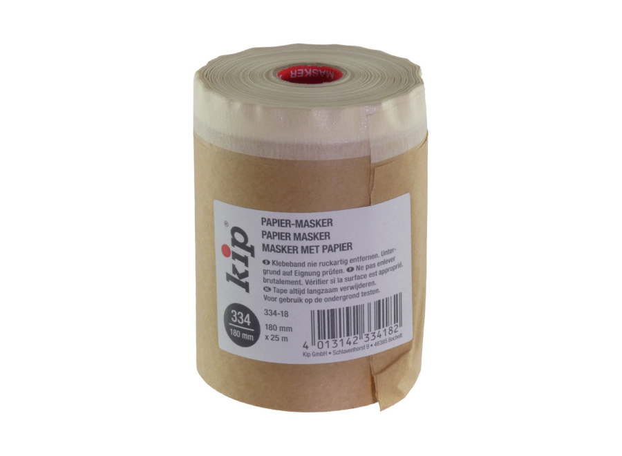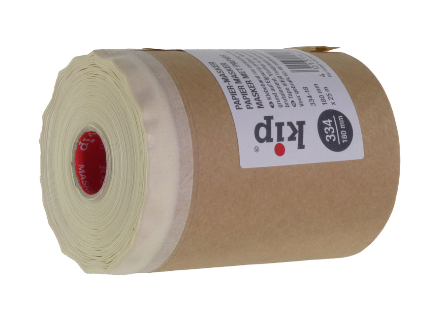 KIP 334 Papier-Masker 25 m für Malerarbeiten besteht aus einem hochwertigen PREMIUM Feinkrepp mit ungebleichtem Natronabdeckpapier (40g/m²). Der Papier-Masker ist umweltfreundlich und eignet sich zum schnellen Abdecken und Maskieren von großen und kompletten Flächen wie z.B. Fußleisten und Fensterbänken.