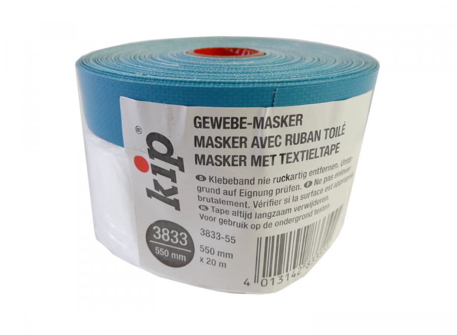 KIP 3833 Gewebe Masker ist ein Masker mit Standard-Gewebeband und einer umweltfreundlichen PE-Abdeckfolie. Die PE-Folie schmiegt sich, durch statische Aufladung eigenständig an den Untergrund an. Die Folie dient zum Abdecken und Maskieren von großen, kompletten Flächen wie z.B. Fenstern und Türen.