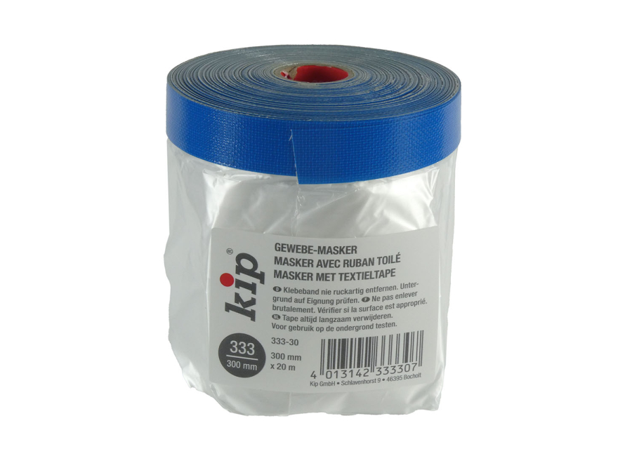 KIP 333 Gewebe-Masker PREMIUM+ ist ein Masker mit hochwertigem Gewebeband und einer umweltfreundlichen PE-Abdeckfolie. Die PE-Folie schmiegt sich, durch statische Aufladung, eigenständig an den Untergrund an und ist UV-beständig. Die Abdeckfolie dient zu Abdecken und Maskieren von großen, kompletten Flächen wie z.B. Fenstern und Türen usw.