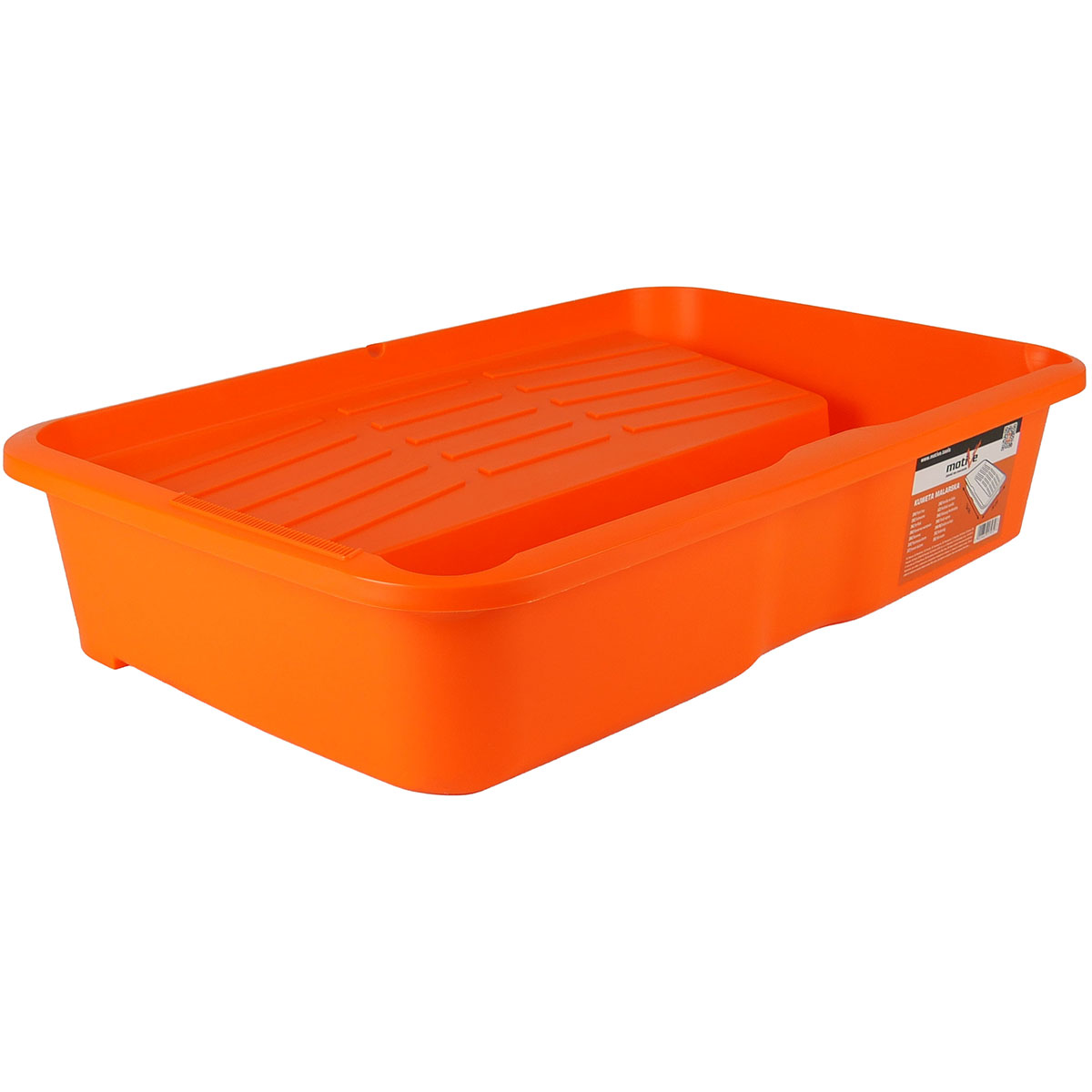 Der große Farbeimer und die Farbwanne V-PRO sind speziell für professionelle Malerarbeiten und Ausbauarbeiten konzipiert. Diese hochwertigen Produkte bieten eine hervorragende Kombination aus Funktionalität und Benutzerfreundlichkeit. Der Stahlbügel mit ergonomischem Kunststoffgriff sorgt für einen angenehmen Halt und eine komfortable Handhabung, selbst bei langen Arbeitsstunden. Hergestellt aus hochwertigem Kunststoff, sind der Farbeimer und die Farbwanne auf eine lange Lebensdauer ausgelegt. Die transparenten Einsätze für den Eimer tragen dazu bei, die Reinigung nach dem Streichen erheblich zu erleichtern, da sie einfach entfernt und gereinigt werden können. Mit einer großzügigen Größe, die Malerwalzen von bis zu 46 cm Breite ermöglicht, beschleunigen diese Produkte den Arbeitsprozess erheblich. Abstreifer sind sowohl in der Farbwanne als auch im Farbeimer integriert. Die Farbwanne passt perfekt oben in den Farbeimer, wodurch ein stabiler und sicherer Halt gewährleistet ist. Beide Produkte verfügen über eingeprägte Trichter, die ein einfaches und sauberes Abgießen von überschüssiger Farbe ermöglichen. Ein integrierter Kamm rechts oben in der Farbwanne, ermöglicht das mühelose Entfernen überschüssiger Farbe von Pinseln.