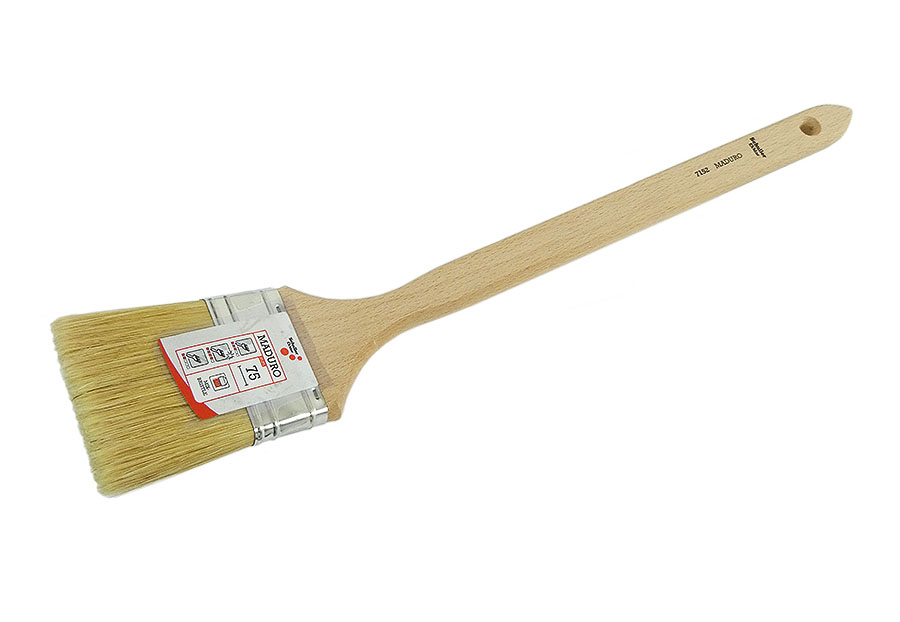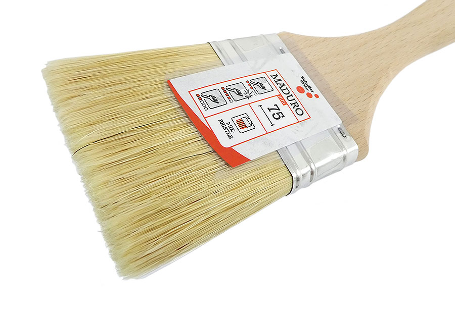 Der SCHULLER Fassadenstreicher MADURO FSP wird zum Auftragen von Farbe an Wänden, Decken, Fassaden und weiteren Oberflächen verwendet. Die Besonderheit dieses formstabilen Fassadenpinsels ist die hervorragende Pinselqualität mit guter Farbaufnahme. Die weichen Spitzen sorgen für ein perfektes Finish. Diese Premium-Pinselserie besteht aus hochwertigen Bestandteilen, wie reine sysnthetische Bortenmischung, einer rostfreien Edelstahlzwinge und einem unbehandelten Holzstiel. Der Fassadenstreicher ist hervorragend geeignet für Farben, Lacke und Lasuten, jedoch besonders für alle wasserlöslichen Farben und Lacke.