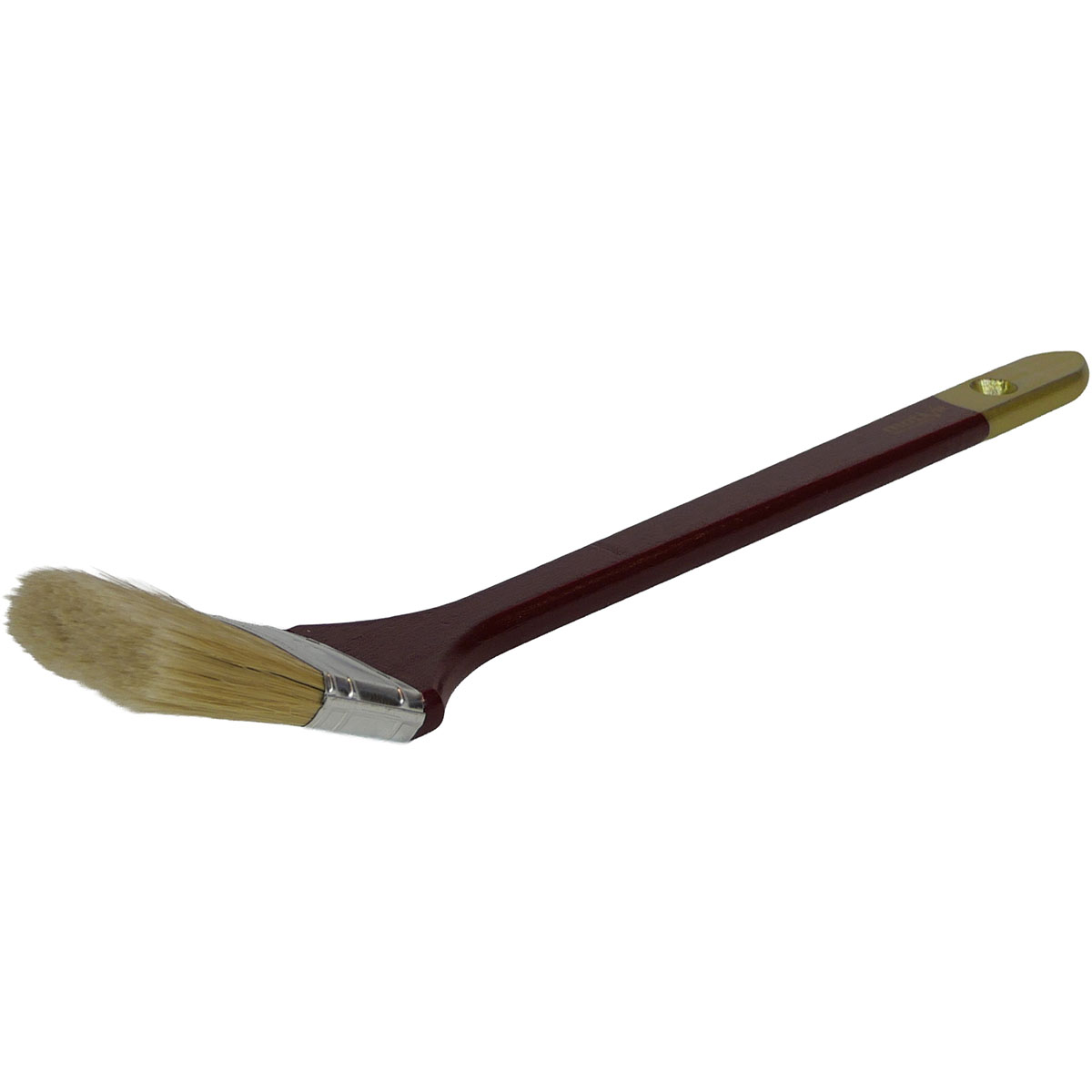 Dieser Heizkörperpinsel RED besitzt einen Griff aus Holz, der in einem dunklen Rot lackiert ist. Das Ende des Pinselstiels ist golden lackiert. Durch die Lackierung liegt der Pinsel allgemein besser und geschmeidiger in der Hand. Die hochwertigen hellen China-Borsten sind fest in einer Edelstahlfassung verankert und sorgfältig getackert. Dank seiner hochwertigen Borsten wird eine gleichmäßige Farbverteilung gewährleistet. Spitzenqualität für lösemittelhaltige Farben, Lacke und Lasuren.