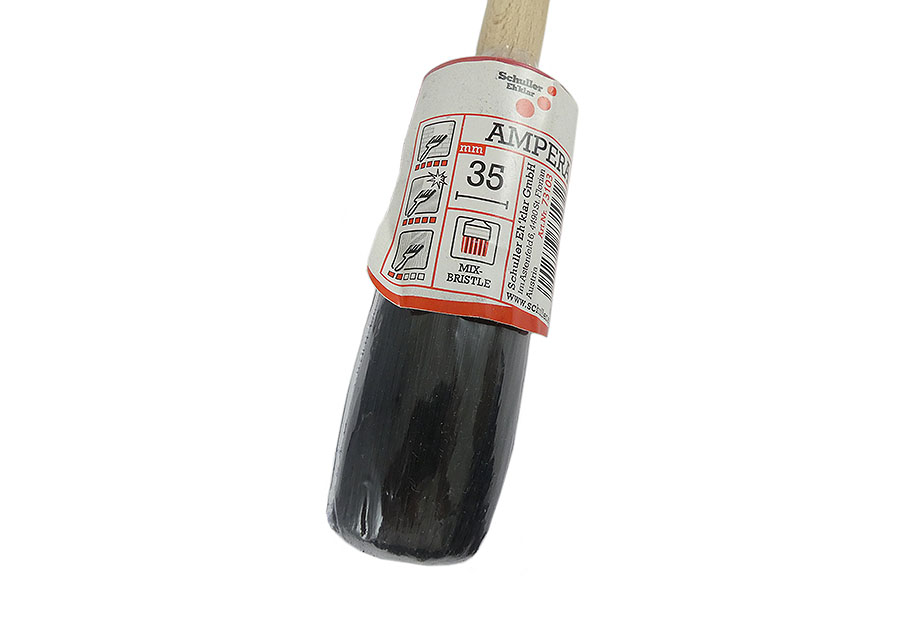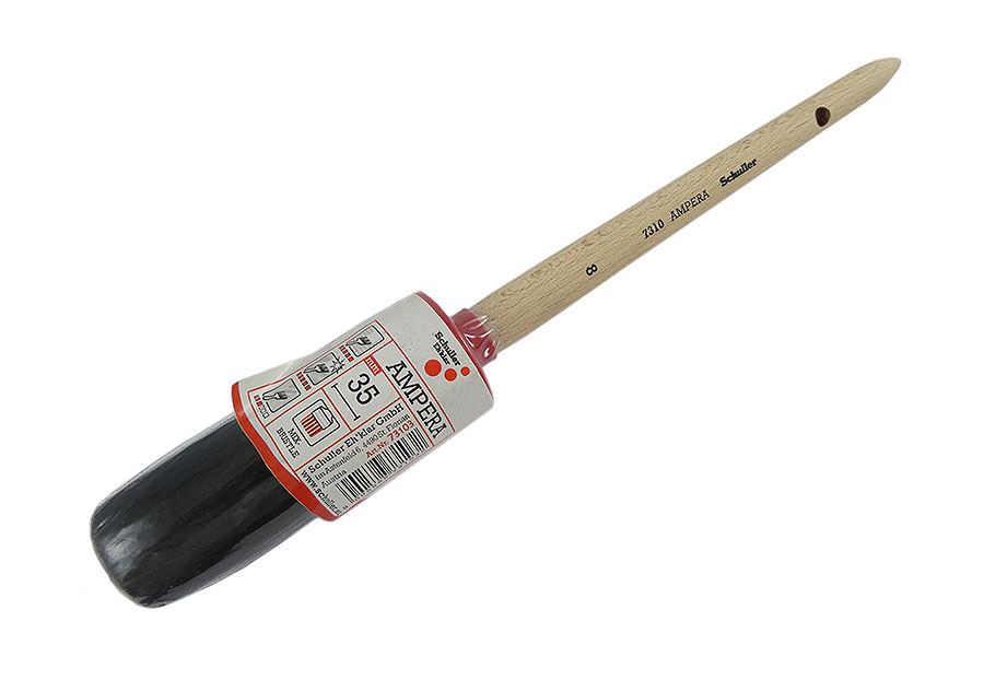 Der SCHULLER Rundpinsel Ampera RP black (auch Ringpinsel genannt) eignet sich besonders gut um kleine Teile und enge Stellen zu streichen, wie z.B. Fenster und Türen und deren Rahmen. Der Rundpinsel / Ringpinsel hat einen runden Borstenquerschnitt und einen Holzstiel, welcher am Ende konisch ausläuft. Das Besondere an diesem metallfreien Rundpinsel ist der zweifach abtrennbare Kunststoffvorband. Die Borsten sind 100% synthetisch, der Stiel besteht aus unbehandeltem Naturholz. Dieser Pinsel ist ideal geeignet für alle lösemittelhaltigen Farben und Lacke.