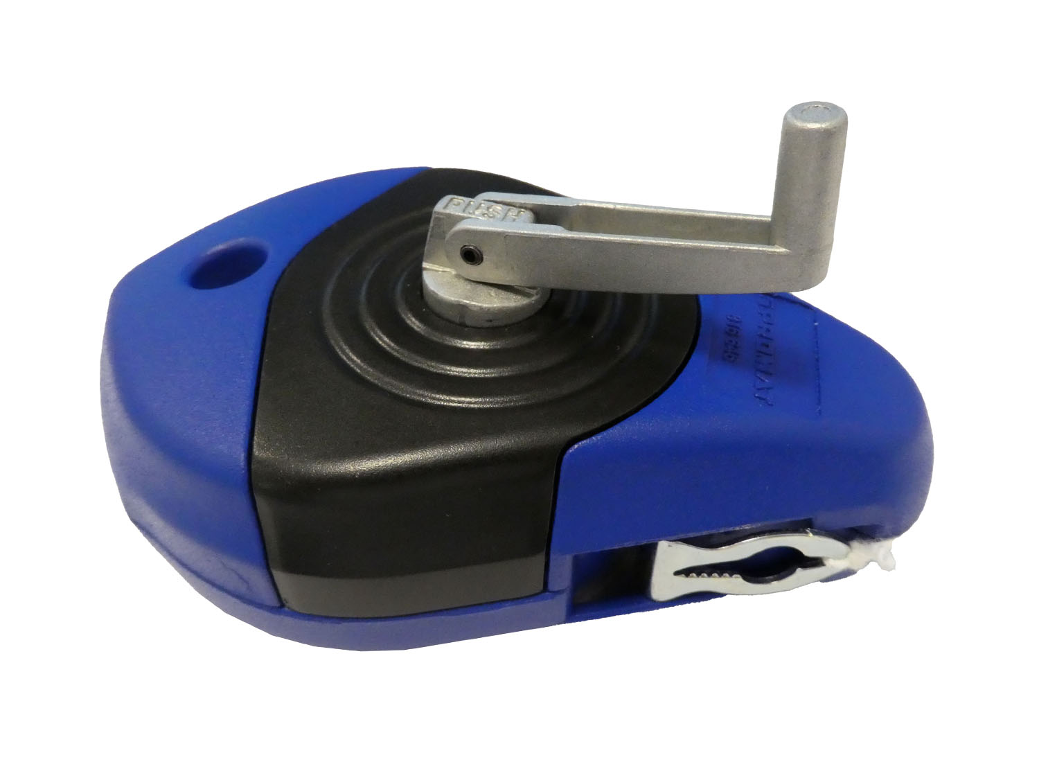 PROMAT Schlagschnurroller 30 m ist sehr leicht und totzdem robust durch den Rollerkörper aus Magnesium-Druckguss. Der Schlagschnurroller hat ein Push-System, bei Druck auf die Achse und Herausziehen der Schnur dreht die Kurbel nicht. Man kann natürlich auch von Hand die Kurbel betätigen. Der gehärteten Haken (mit gebogenen Zacken) kann an Kanten angenagelt werden. Im Rollerkörper können große Mengen an Farbpulver gefüllt werden. Der Schlagschnurroller hat eine Stahlöse am Schnuraustritt, einen Gürtelclip und flache Flanken auf beiden Seiten, damit der Schlagschnurroller perfekt waagerecht liegen kann. Die Kurbel kann in einer Vertiefung im Rollerkörper eingeratet werden und ist damit festgestellt. Die Schnur ist 30 m lang.
