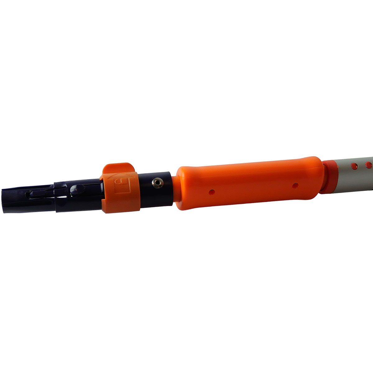 Die innovative SyncroMatic Teleskopstiel ist leicht und effizient zu bedienen durch einfaches Ziehen statt Drehen, auf jede Länge stufenlos verstellbar. SyncroMatic vereint den bewährten Verschluss der SystemBlock Teleskopstange mit einem innovativen Schnellverstell-Mechanismus. Mit nur einer einzigen Bewegung lässt sich die Stange im Handumdrehen doppelt ausziehen oder verkürzen – für eine besonders schnelle und komfortable Längenanpassung. Eine echte Turbo-Verlängerung! Sie liegt durch einen ergonomischen, ovalen Softgriff sehr gut in der Hand und macht ein komfortables Arbeiten in hohen und engen Räumen und einem einfachen Bügelwechsel möglich. Die innenliegende Mechanik ermöglicht eine leichte Reinigung. Die Materialien sind sehr hochwertig und langlebig.