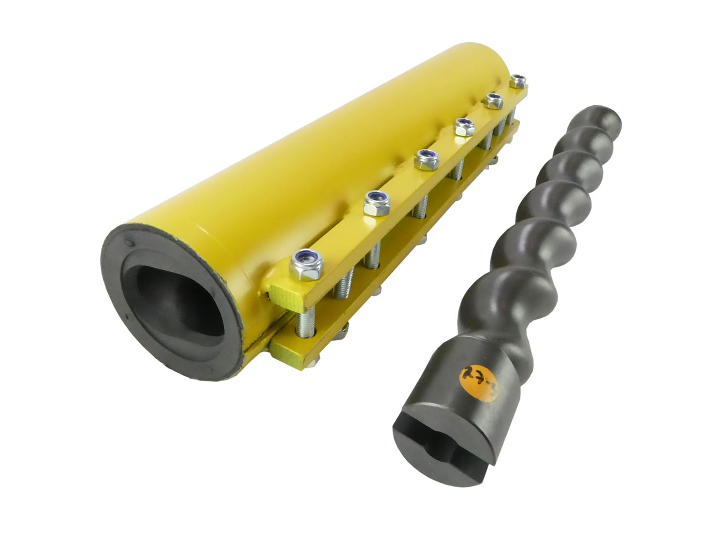 Mantel und Schnecke im Set. Der Stator oder auch als Schneckenmantel bezeichnet, ist der feststehende und unbewegliche Teil des Pumpensystems, welcher den rotierenden Rotor (Putzschnecke) umschließt. Die Schneckenpumpe (bestehend aus Rotor und Stator) bestimmt durch Durchmesser, Steigung und Exzentrität die Hauptparameter Fördermenge und möglichen Druck (=Förderweite). Der Schneckenmantel besteht aus einer hochverschleißfesten und gealterten Gummimischung. Es werden verschiedene Modelle der Statoren und Rotoren verwendet, welche unterschiedlichen Bauformen aufweisen, um Material unterschiedlicher Korngrößen fördern zu können. Auch die Förderleistung wird durch die Bauform bestimmt.