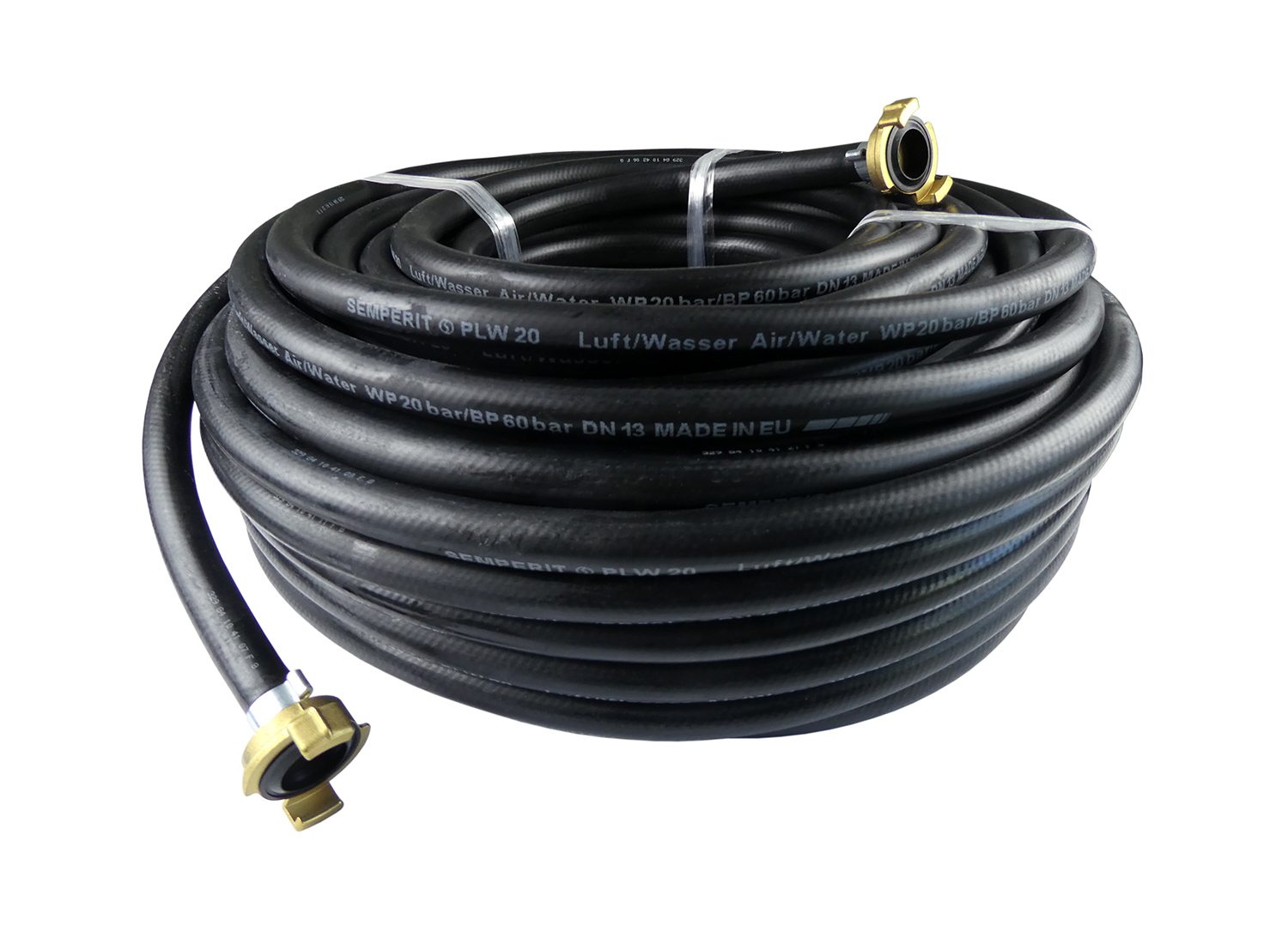 Der Schlauch wird mit zwei hochwertigen Messing-Kupplungen ausgeliefert, außer bei der Variante 50 m (Rolle), die wird OHNE Kupplungen geliefert.