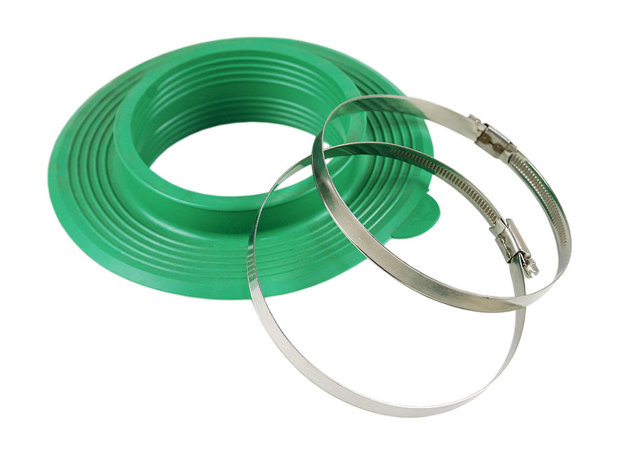 Der MASTERTEC Rondo Mauerkragen inklusive 2 Spannbänder ist eine ideale Hauseinführung / Bauwerksabdichtung und findet seinen fachgerechten Einsatz dort, wo Rohrleitungen wasser- und radondicht durch die Bodenplatten, durch das Mauerwerk und durch Wände geführt werden müssen. Durch den Mauerkragen wird verhindert, dass Feuchtigkeit an der Rohraußenwand ins Bauwerk gelangt. Der Wassersperrflansch ist 5 bar geprüft und ebenfalls auf eine Dichtigkeit bis 50 m Wassersäule geprüft.
