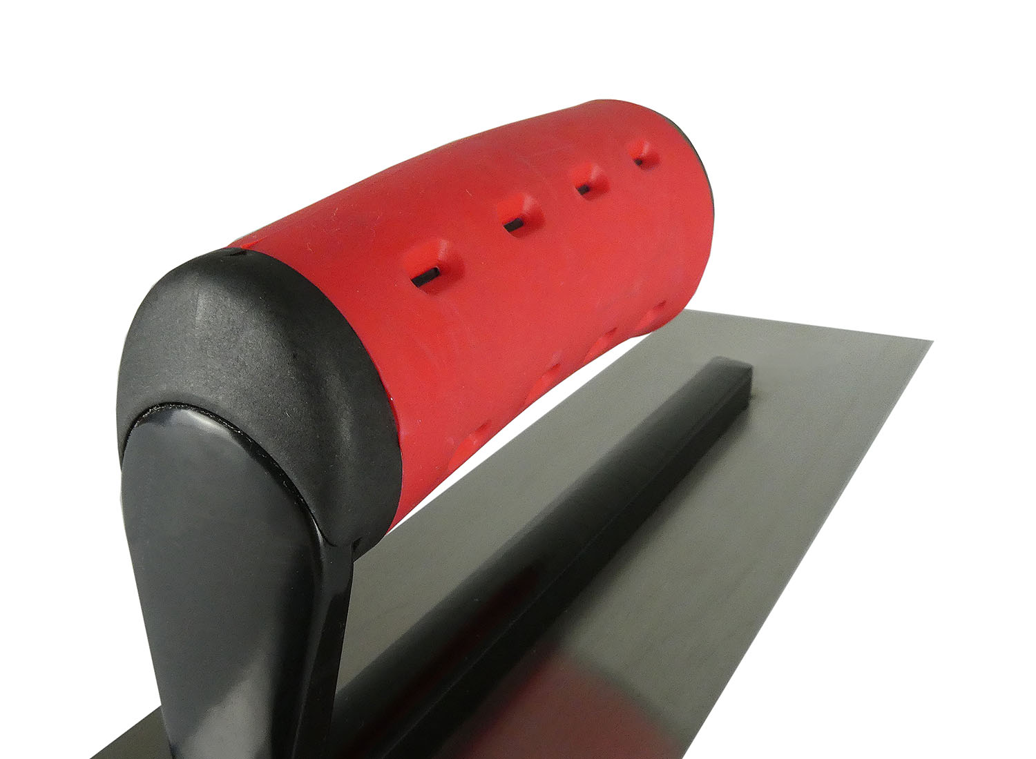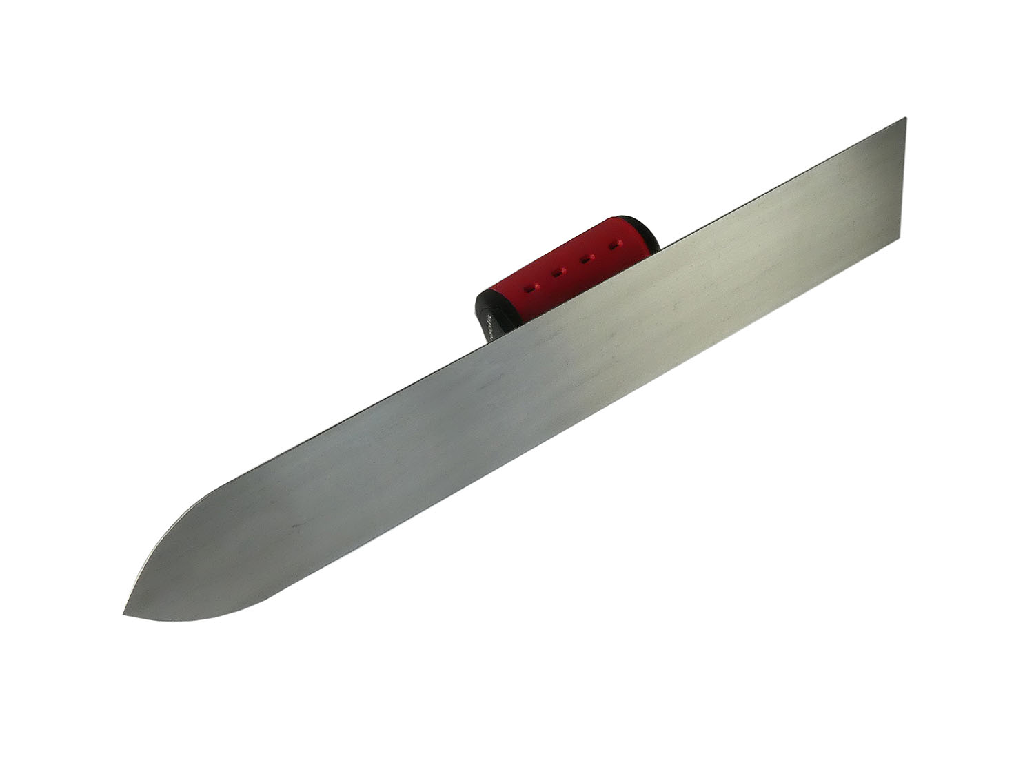 Glättschwert mit 2K-Griff 500 x 90 mm Blattstärke 1 mm verstärkte Ausführung in konischer Form und Spitze. Das Glättschwert wird zum professionellen, gleichmäßigen Verteilen und Vorglätten von Material auf dem Estrichboden oder Bodenausgleichsmaterial verwendet. Durch die Spitze kommt das Glättschwert optimal bis in die Ecken.