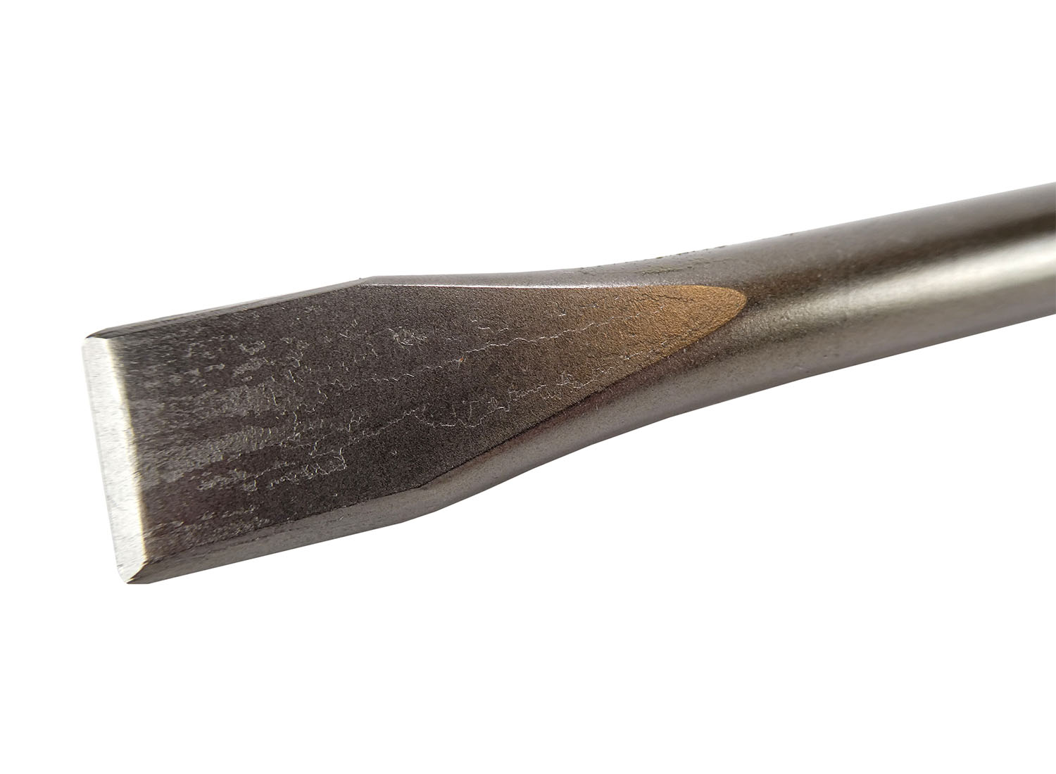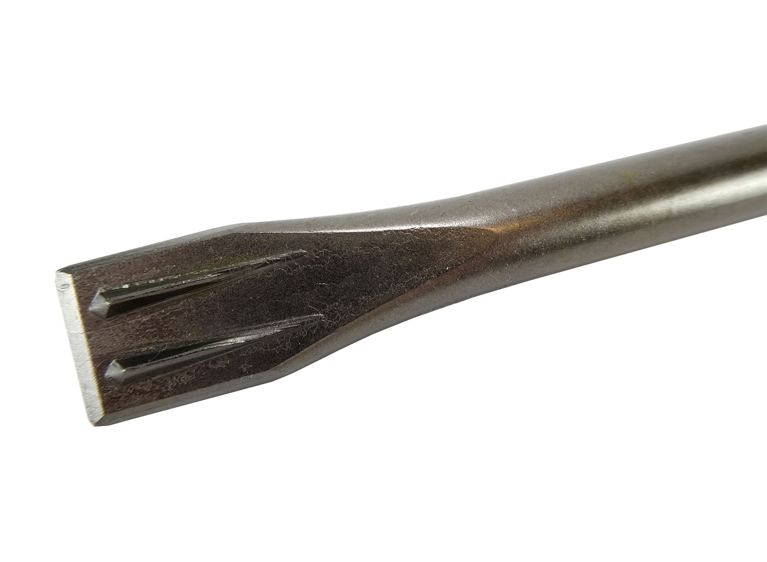 MAKITA Flachmeißel SDS-PLUS 20 x 250 mm B-64777 mit zwei zusätzlichen "Ecken" auf der Fläche, die Risse in verschiedenen Richtungen erzeugen, was zu einer höheren Abtragsleistung führt.