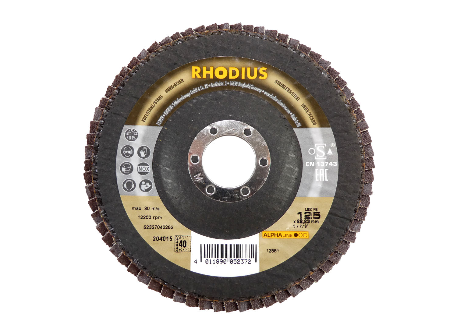 Die RHODIUS Lamellenscheibe LSZ F2 125 x 22,23 mm K40 ist eine leistungsstarke Zirkon-Fächerschleifscheibe für den preisbewussten Fachmann. Sie hat eine gute Lebensdauer, eine hohe Zerspanungsleistung und ist ein widerstandsfähiger Faserstoffträger. Die Lamellenscheibe eignet sich für Winkelschleifer aller Leistungsklassen, inklusive antriebsschwache Maschinen und Akkumaschinen. Die RHODIUS Fächerschleifscheibe wurde gezielt für die Bearbeitung von Edelstahl, Stahl und Stahlguss entwickelt und ist nach EN 13743 hergestellt, sicherheitsgeprüft und zudem oSa-zertifiziert. Der Tragteller ist aus Glasfaser. Sie ist eisen- und schwefelfrei.