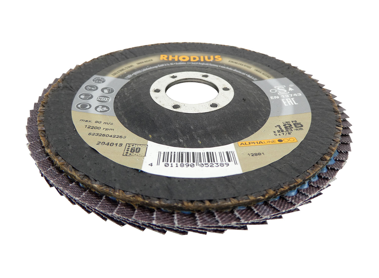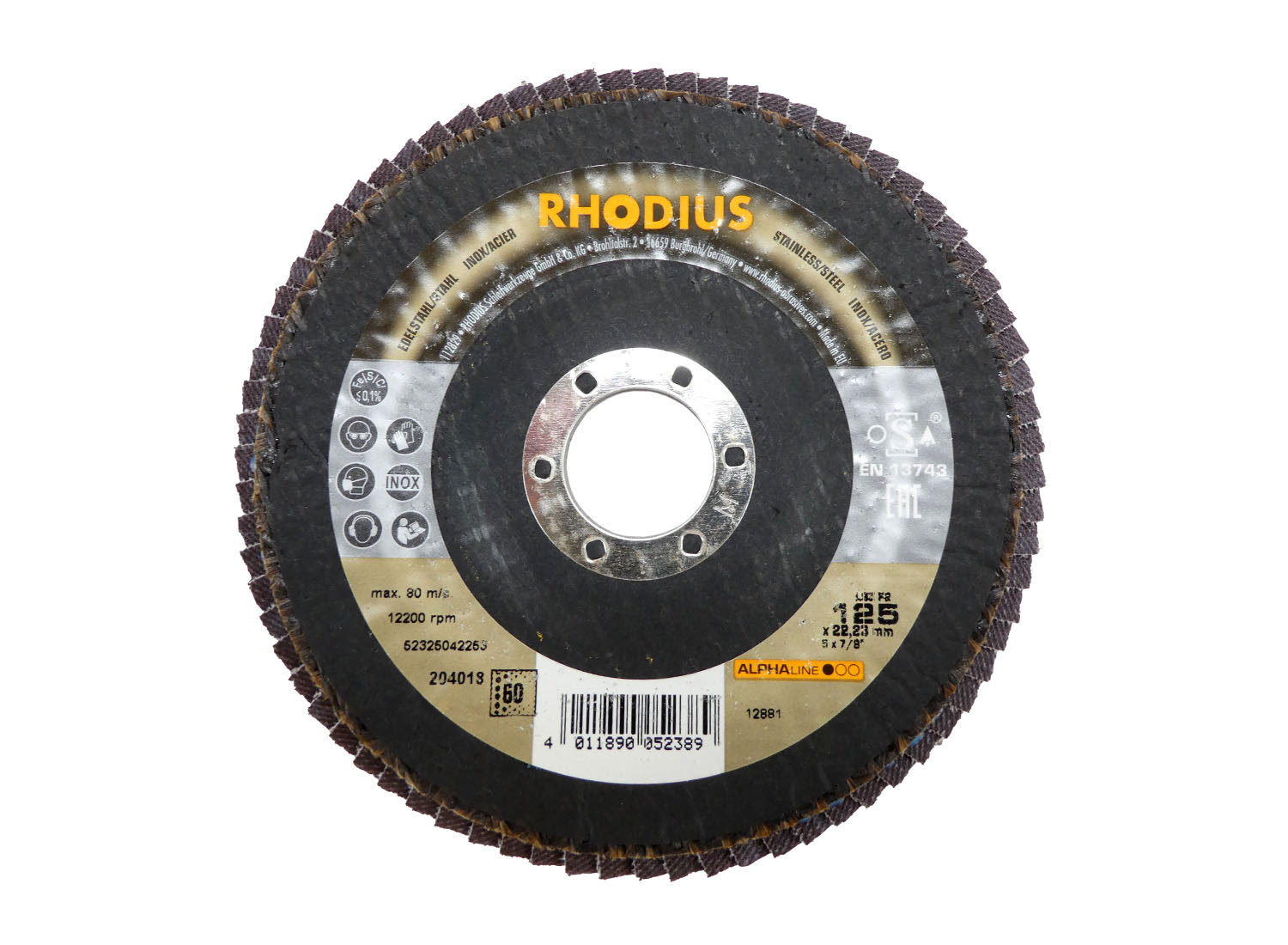 Die RHODIUS Lamellenscheibe LSZ F2 125 x 22,23 mm K60 ist eine leistungsstarke Zirkon-Fächerschleifscheibe für den preisbewussten Fachmann. Sie hat eine gute Lebensdauer, eine hohe Zerspanungsleistung und ist ein widerstandsfähiger Faserstoffträger. Die Lamellenscheibe eignet sich für Winkelschleifer aller Leistungsklassen, inklusive antriebsschwache Maschinen und Akkumaschinen. Die RHODIUS Fächerschleifscheibe wurde gezielt für die Bearbeitung von Edelstahl, Stahl und Stahlguss entwickelt und ist nach EN 13743 hergestellt, sicherheitsgeprüft und zudem oSa-zertifiziert. Der Tragteller ist aus Glasfaser. Sie ist eisen- und schwefelfrei.