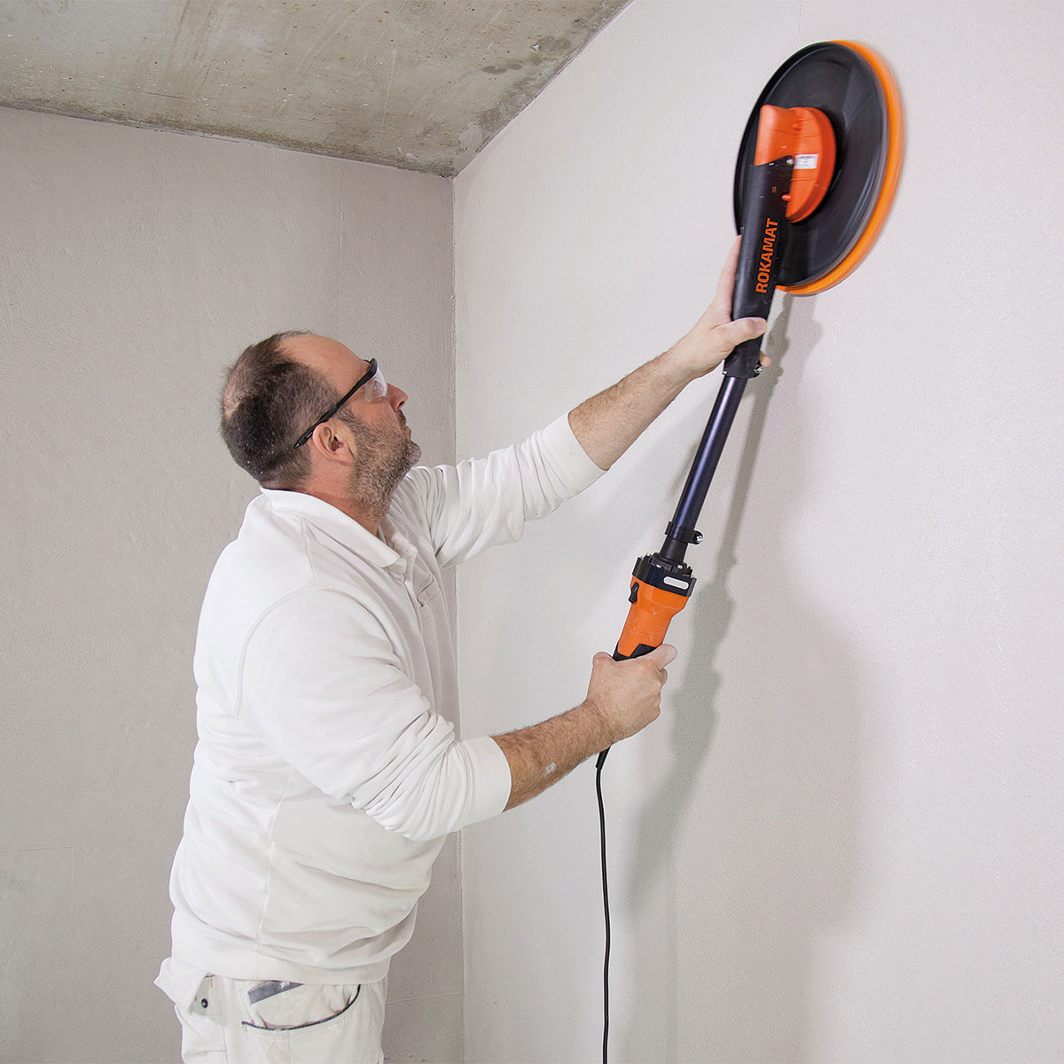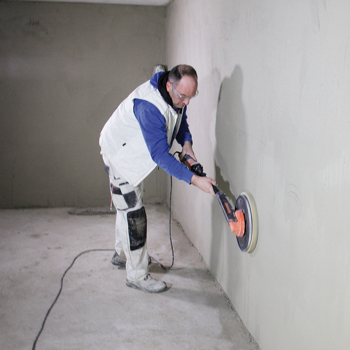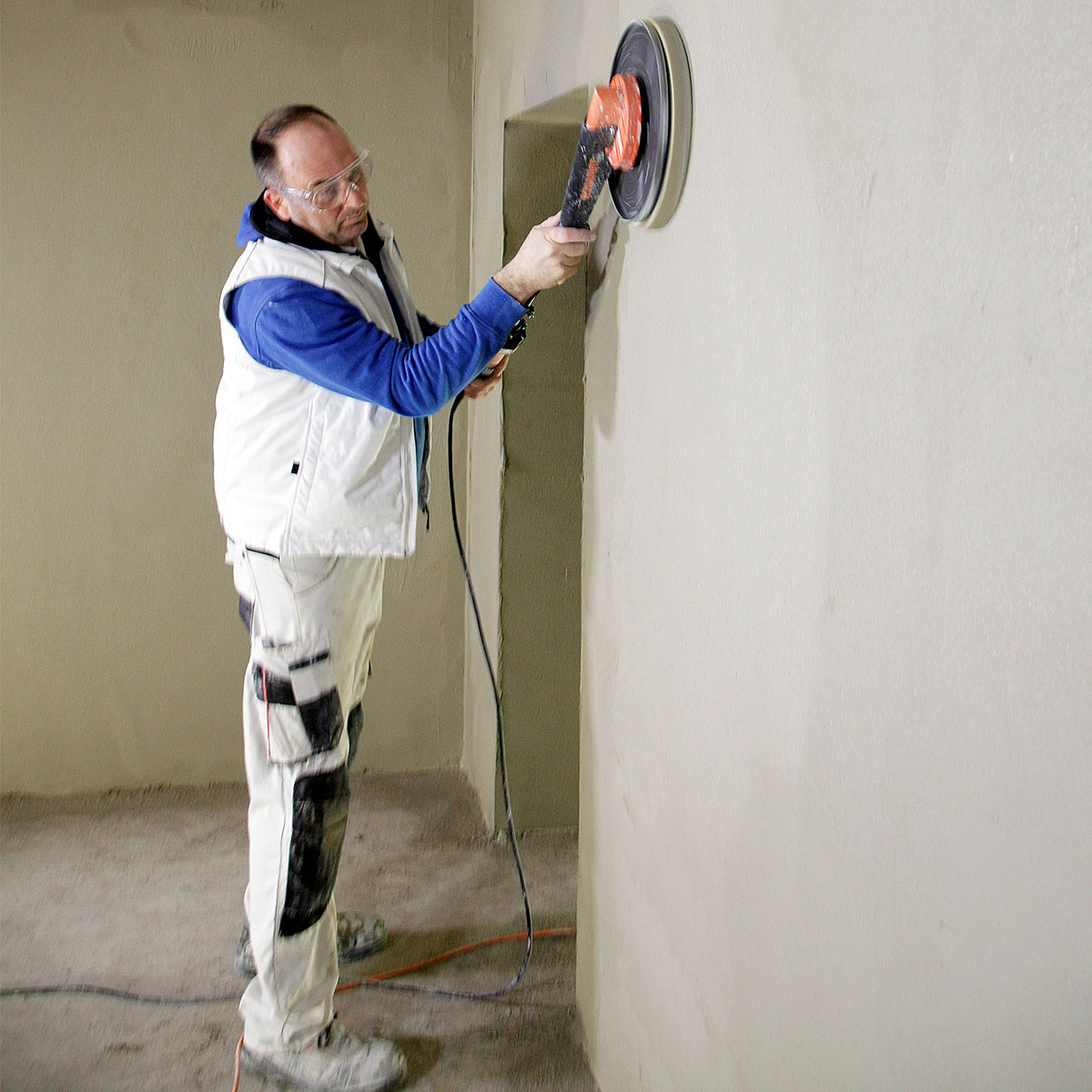 Die Putzbearbeitungsmaschine PFM 5 ist wegen ihrer kompakten Bauweise besonders beliebt. Im Griffende ist der Motor integriert, was für ein komfortables Handling sorgt. Sogar in engen Räumen oder auf dem Gerüst wird das Arbeiten mit der PFM 5 geschätzt. Die Zubehörscheiben von ⌀ 250 bis zu 450 mm ermöglichen eine großflächige Bearbeitung bei gleicher Struktur. Mühevolle und zeitaufwendige Putzbearbeitung von Hand gehört damit der Vergangenheit an (ca. 50% Zeitersparnis). Stuckateure, Gipser und Maler haben mit der PFM 5 viele Einsatzmöglichkeiten, wie z.B. Putzbearbeitung, Frischbeton glätten, Arbeiten auf Gerüsten.