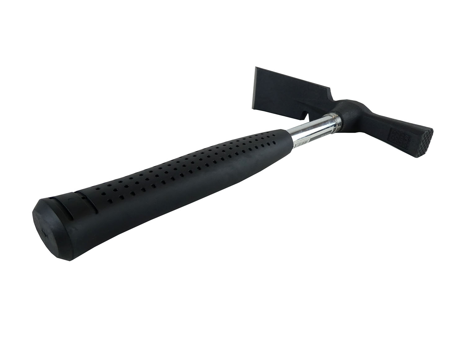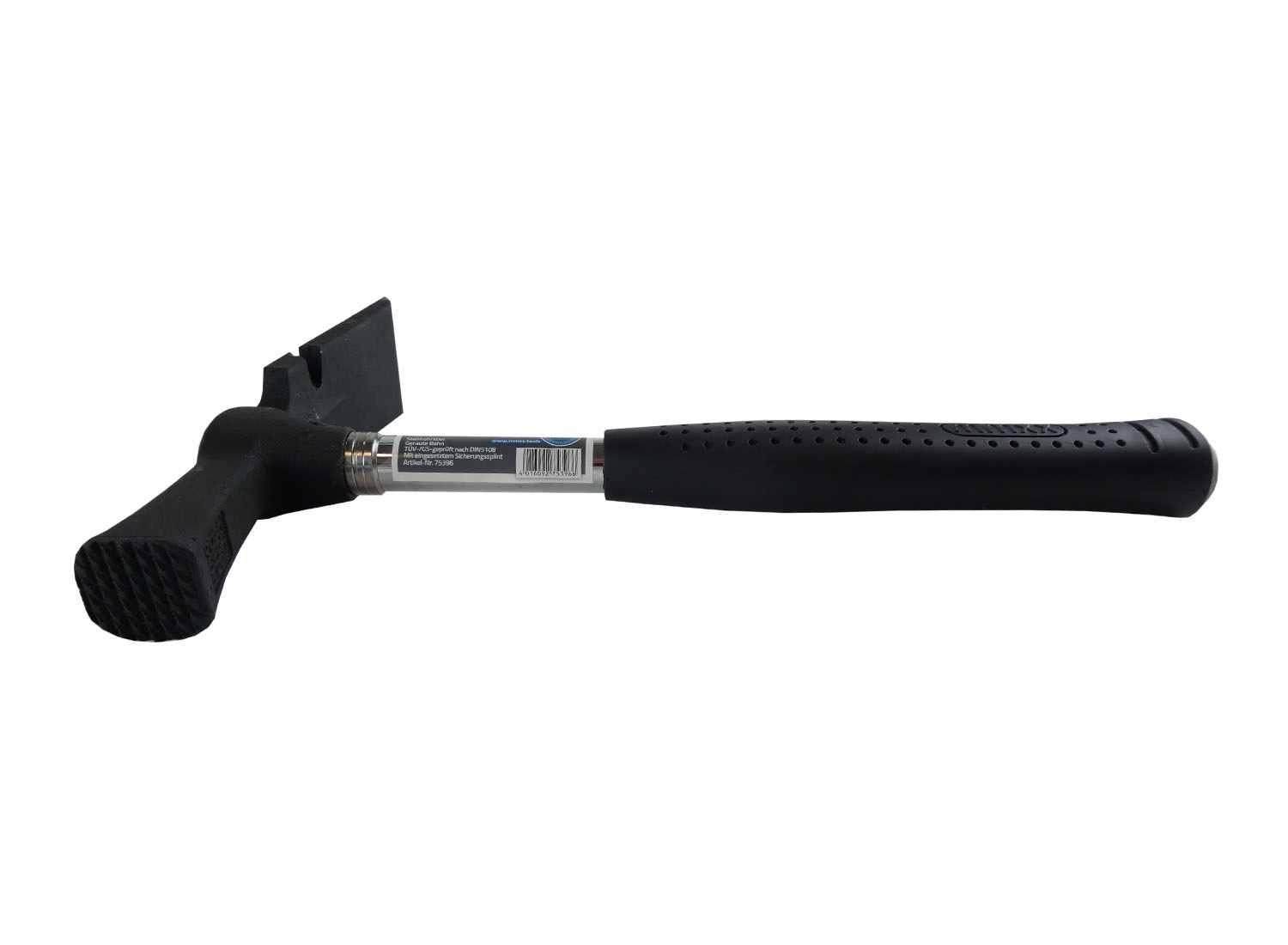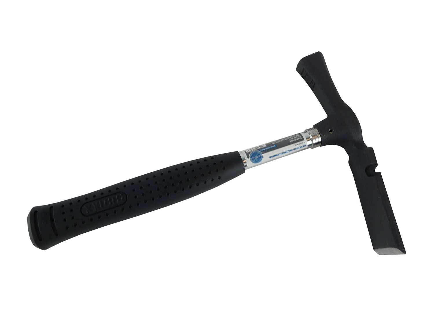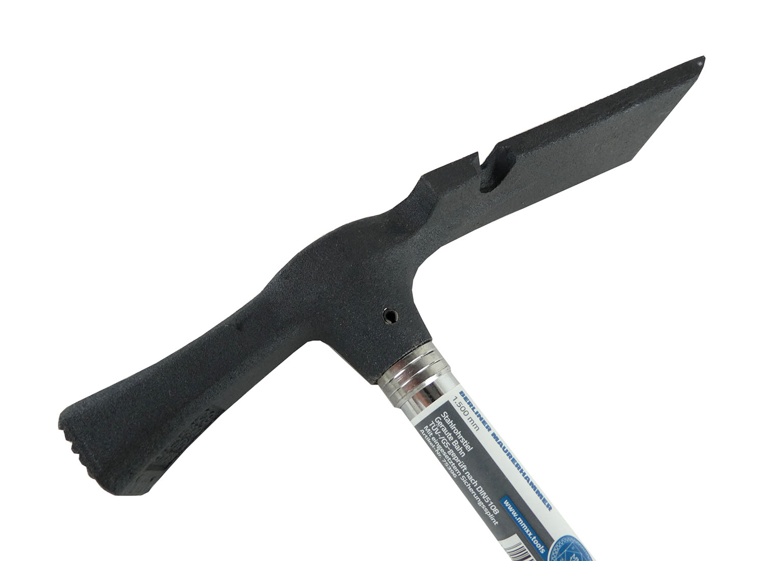 Maurerhammer Berliner Form mit Stahlrohrstiel 600 g, geraute Bahn, mit einem sehr griffigen, rutschfesten, gummierten Griff und mit eingesetztem Sicherungssplint am Kopf, TÜV-/GS-geprüft nach DIN5108.