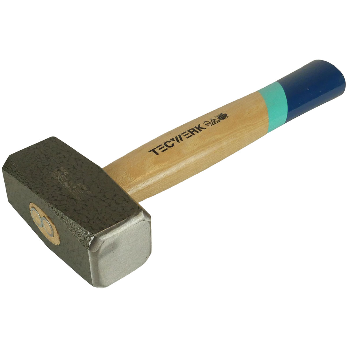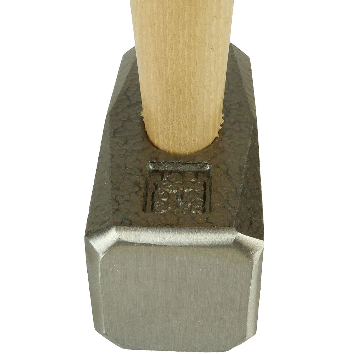 Der gesenkgeschmiedeter Fäustel mit geschweiftem Hickorystiel ist nach DIN 6475 verarbeitet. Die Bahnen sind sorgfältig gehärtet und angelassen, die Bahnkanten sind gebrochen. Der Kopf ist schwarz lackiert, die Arbeitsflächen blank, der Holzstiel ist lackiert und verkeilt.