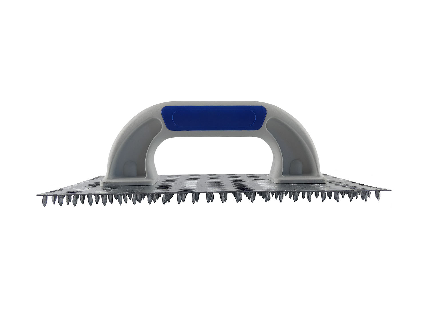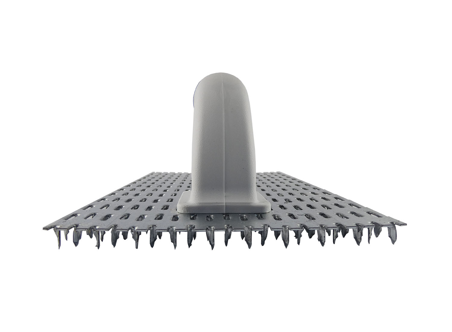 Der DEWEPRO Profi Edelputzkratzer wird zum Beschleifen von erstarrtem aber noch weichem Putz verwendet. Er ist mit hochwertigen und stabilen 10 mm Stahlspitzen ausgestattet. Der Edelstahlputzkratzer eignet sich ideal zum Abtragen, Bearbeiten, Egalisieren, Entfernen und Schleifen von Altputz und Mineralputz. Das Raspelbrett liegt sehr gut in der Hand durch seinen ergonomischen 2K-Griff aus hochfestem PS-Polystyrol und erleichtert die Arbeit enorm. Die Seitengummieinlagen im Griff bieten sicheren Halt. Die Oberfläche und die Spitzen des Kratzputzigels ist aus voll verzinktem Stahlblech.