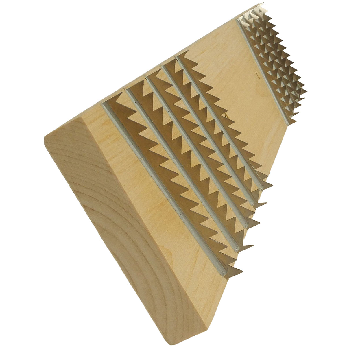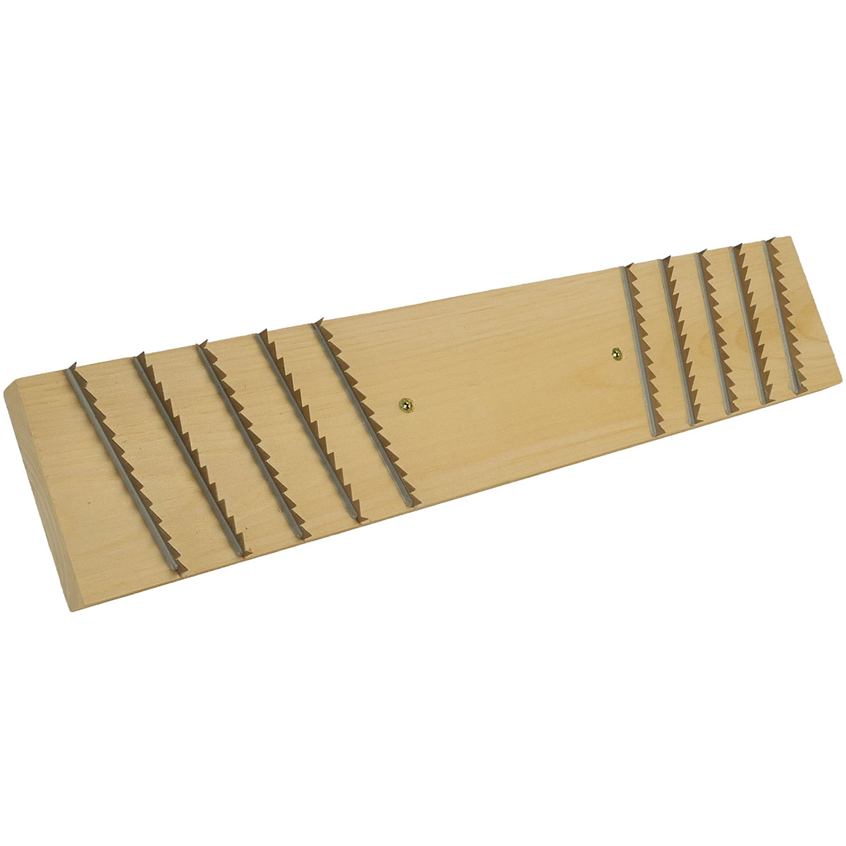 Dieser Gasbeton-Raspelhobel 500 x 100 mm oder auch Raspelbrett / Porenbetonhobel genannt, eignet sich zum Abschleifen und Ausgleichen von Porenbetonsteinen. Die 10 Raspelleisten sind aus Stahl und haben jeweils 12 Sägezähne. Griff und Körper sind verschraubt.