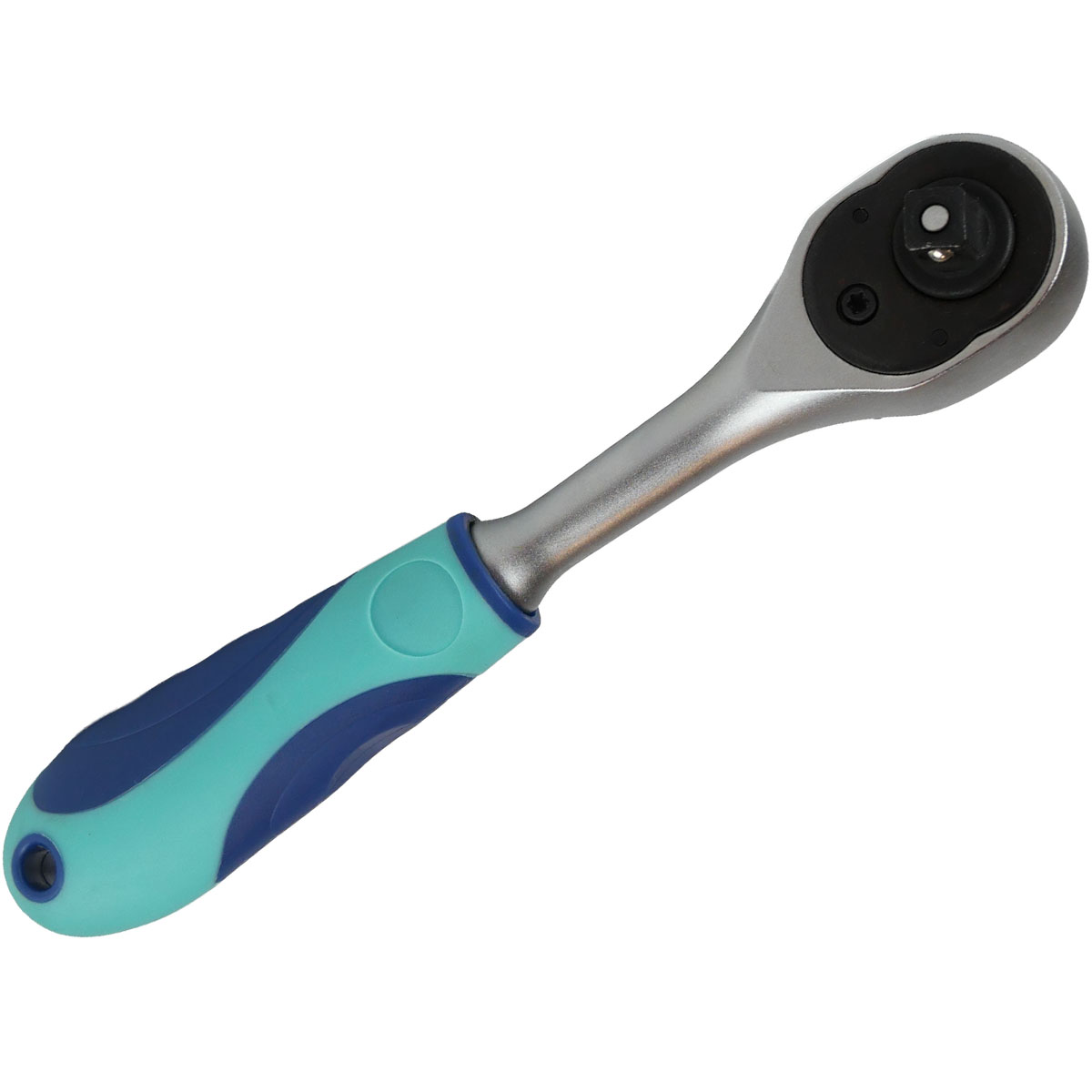 Die Ratsche / Knarre / Hebelumschaltknarre mit 2K-Griff und 72 Zähne hat einen Vierkantantrieb von 1/4 Zoll (6,3 mm) bzw. 1/2 Zoll (12,5 mm).