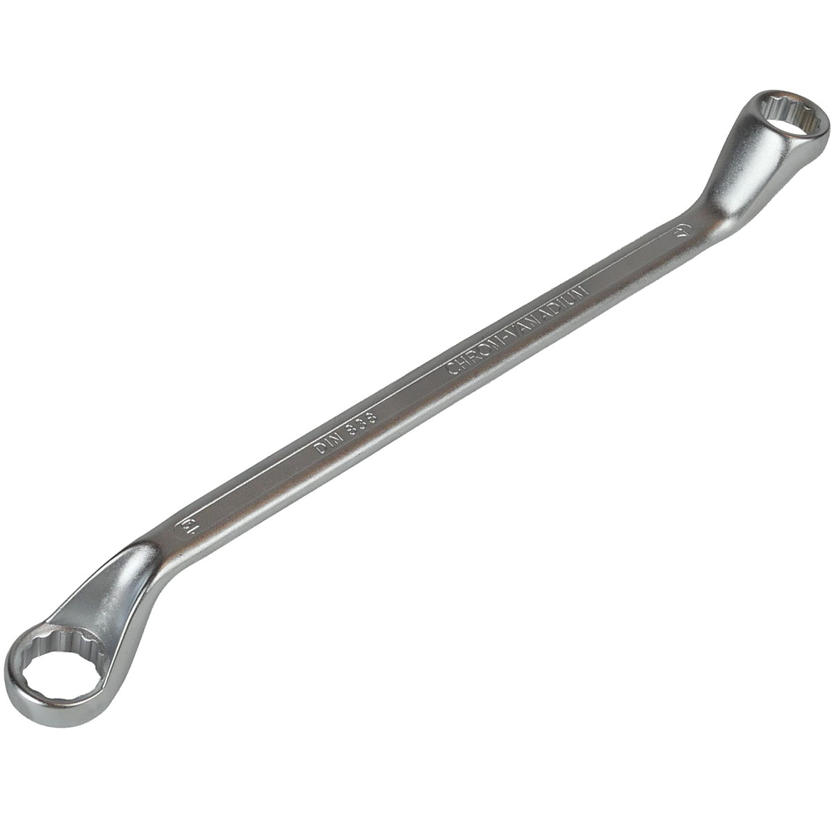 Doppelringschlüssel aus CV-Stahl matt verchromt tief gekröpft mit dünnwandigen Ringen DIN 838 / ISO 3318 / ISO 1085 / ISO 10104.
