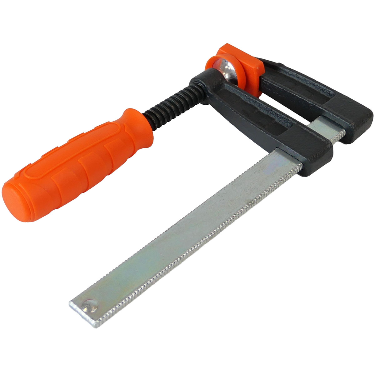Universelle Schraubzwinge für Werkstatt- und Heimwerkerarbeiten, extrem robuste Metallkonstruktion für Langlebigkeit und Widerstandsfähigkeit auch bei intensiver Nutzung. Sowohl Ober- als auch Unterteil sind aus hochwertigem Temperguss gefertigt. Die Profilschiene mit Riffelung als Rutschsicherung aus hochwertigem Stahl kann selbst bei starkem Druck nicht verbiegen oder brechen. Der ergonomische Kunststoffgriff sorgt für hohen Bedienkomfort. Die Fähigkeit, Materialien sicher zu fixieren, während sie gleichzeitig durch die Schutzkappen auf den Spannflächen vor Beschädigung geschützt werden, macht das Spannwerkzeug zu einer wertvollen Ergänzung jeder Werkzeugkiste. Egal, ob Sie Holzarbeiten, Metallbearbeitungen oder kreative Bastelprojekte durchführen, diese Klemme bietet Ihnen die nötige Unterstützung und Präzision.