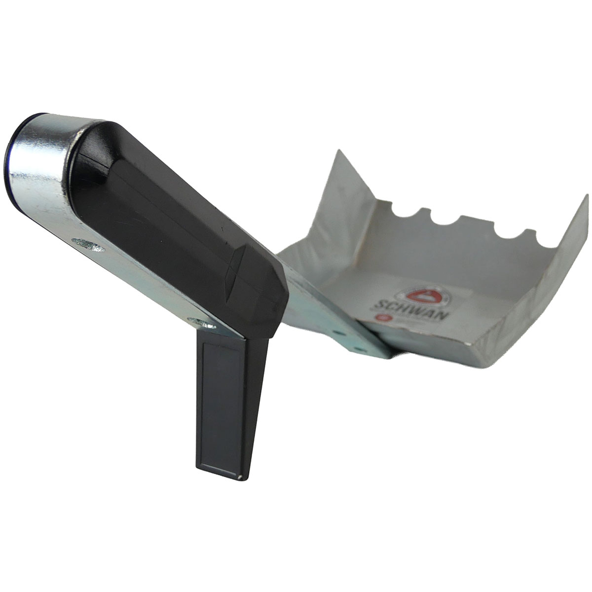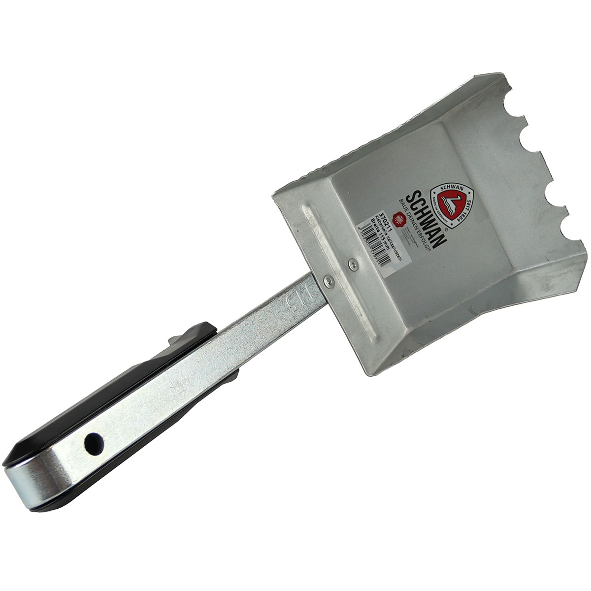 Die gezahnte Klebekelle für Kalksandstein ist aus verzinktem Stahl mit Kunststoffgriff. Durch die Schaufelform wird der Kleber aufgenommen. Die Klebekelle hilft beim gleichmäßigen Verstreichen des Klebematerials auf den Stein. Es empfiehlt sich eine schmalere Kelle zum Bestreichen zu verwenden als der Stein breit ist, da sonst der Kleber zwischen den Steinen herrausquillt und runterläuft. Die Kelle hat einen Haken zum Einhängen in den Eimerrand.