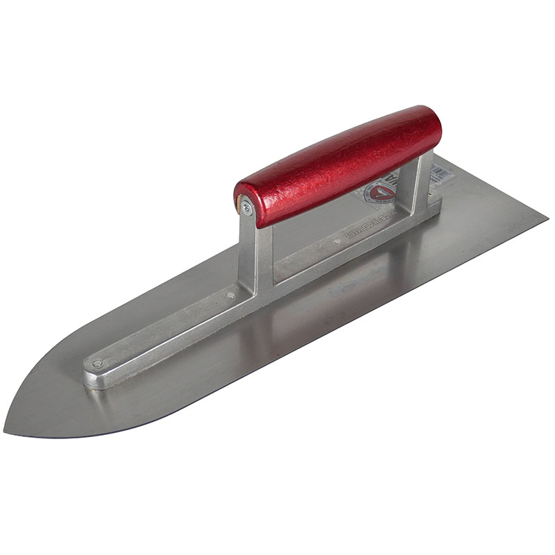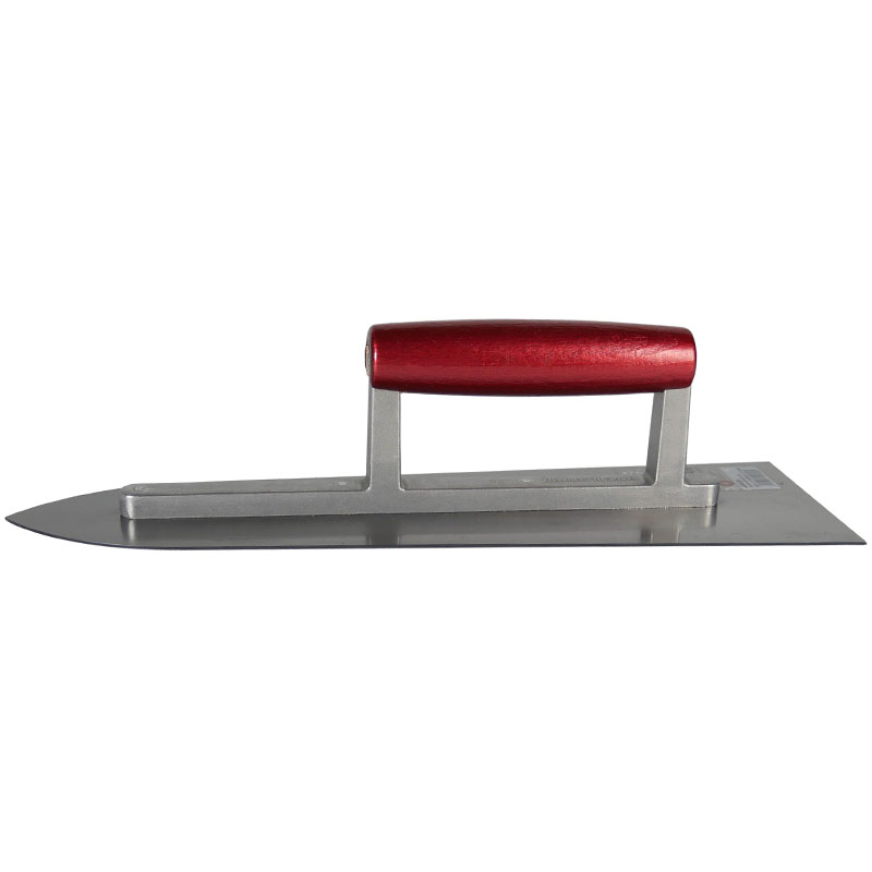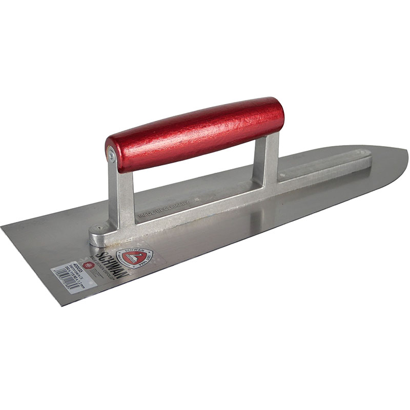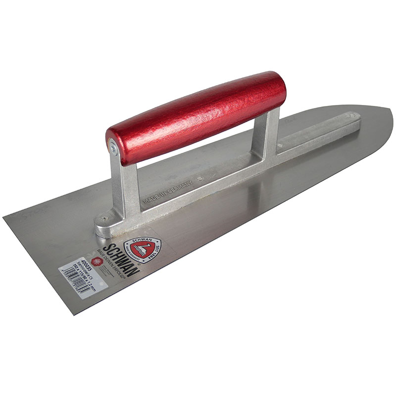 Die robuste Schwertglätter / Bodenlegerkelle mit ergonomischem Holzgriff mit spitz zulaufendem Blatt und mit kurzem Steg. Das Glättschwert wird zum professionellen, gleichmäßgen Verteilen und Vorglätten von Material auf dem Estrichboden oder Bodenausgleichsmaterial verwendet. Durch die Spitze kommt die Bodenlegerkelle /