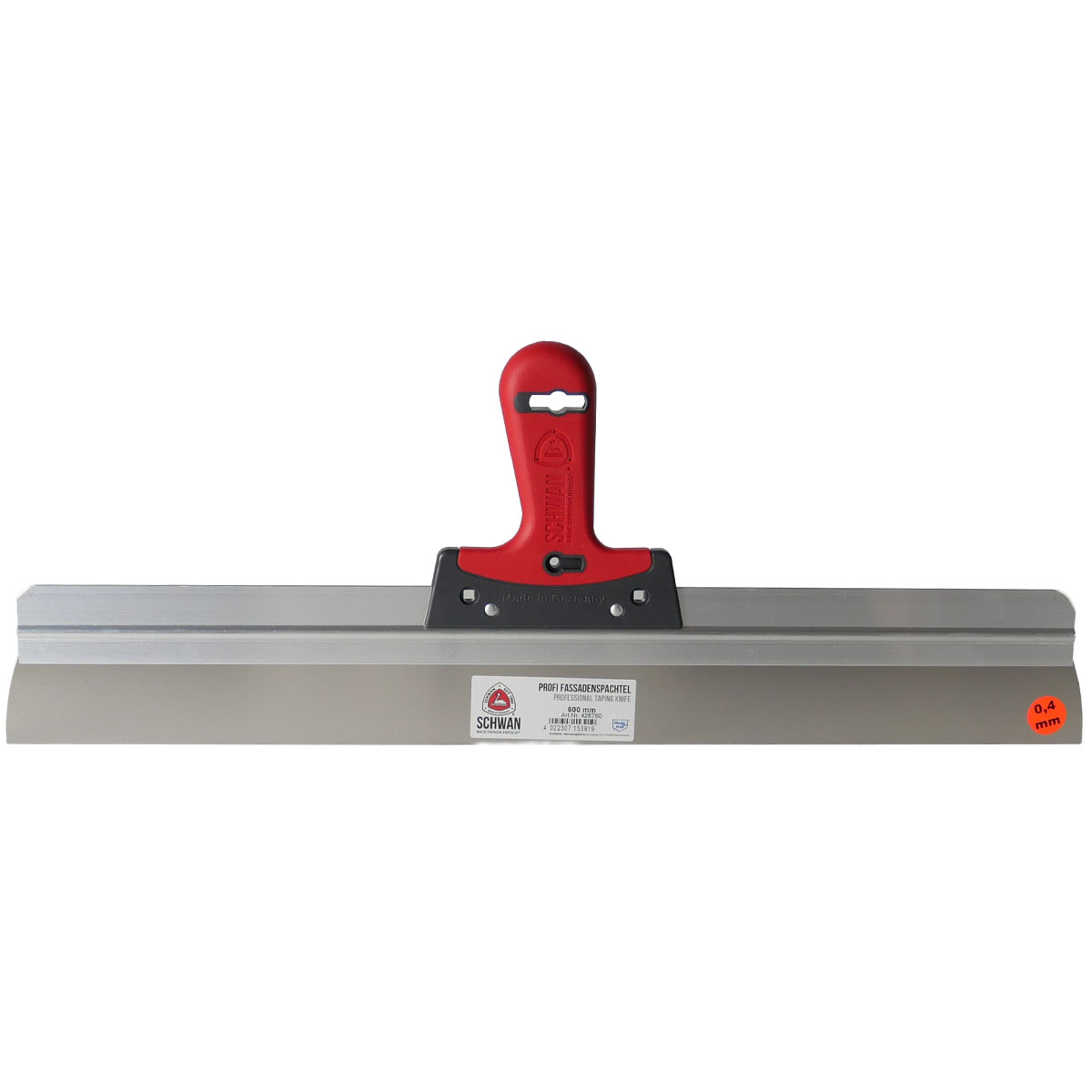 Flächenspachtel sind für großflächige Spachtelarbeiten ideal. Hierbei kommt es neben der nötigen Übung auch auf den richtigen Schwung an, der Spachtel wird mit weiten Bewegungen über die Fläche gezogen und zieht sie so glatt. Für ein perfektes Ergebnis ist die Verwendung eines hochwertigen Werkzeugs von Bedeutung. Der Griff dieses Profi-Fassadenspachtels ist mit zwei Bohrungen versehen, an denen ein Gelenk befestigt werden kann. Auch das geringe Gewicht überzeugt in der Praxis.