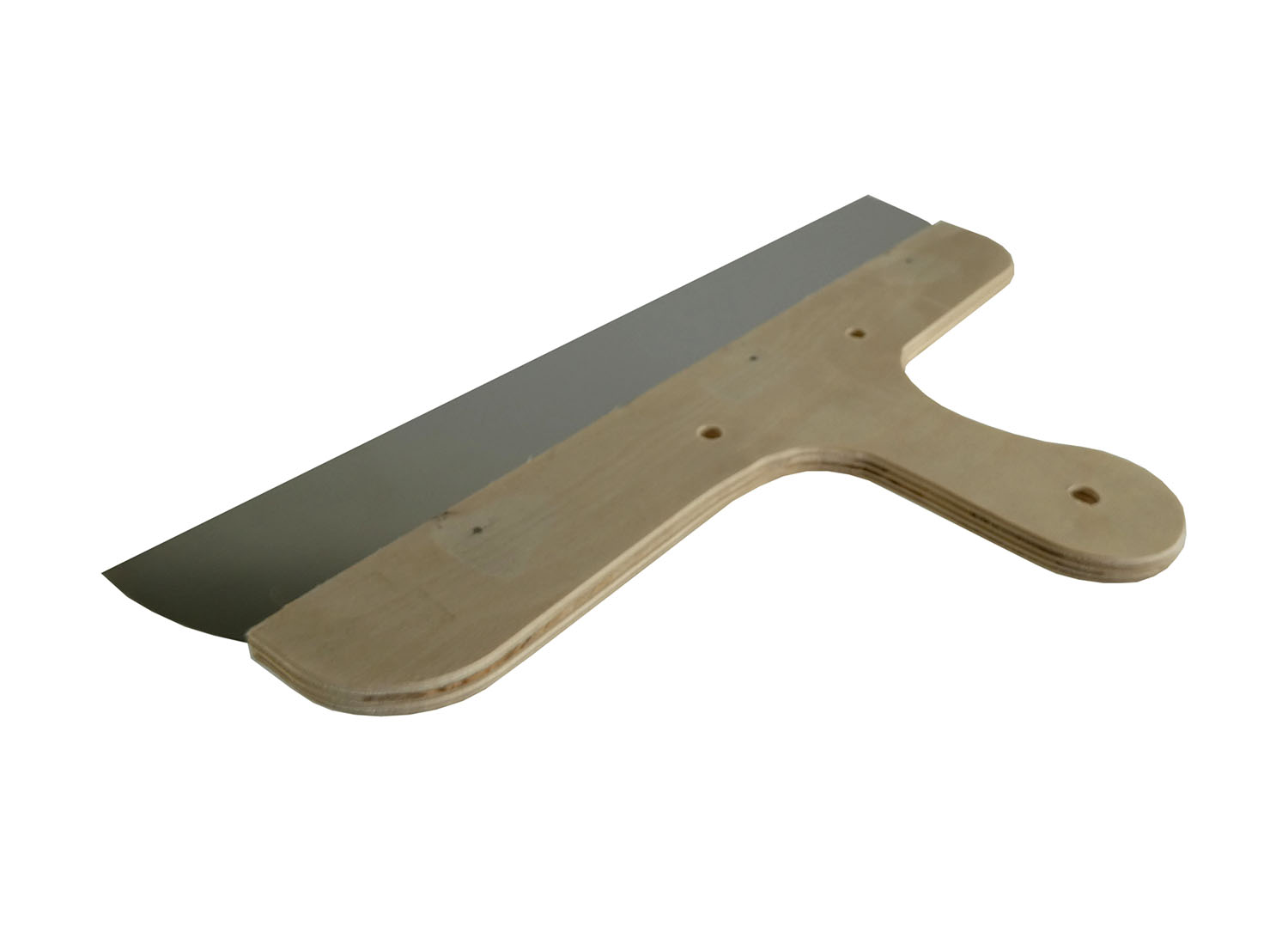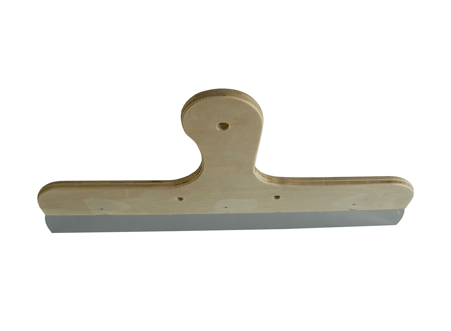 Der Flächenspachtel ist ein Werkzeug zum Auftragen von Spachtelmasse an der Fassade oder bei Fußbodenbeschichtungen. Dieses Flächenrakel hat ein rostfreies Stahlblatt und einen Naturholzgriff.