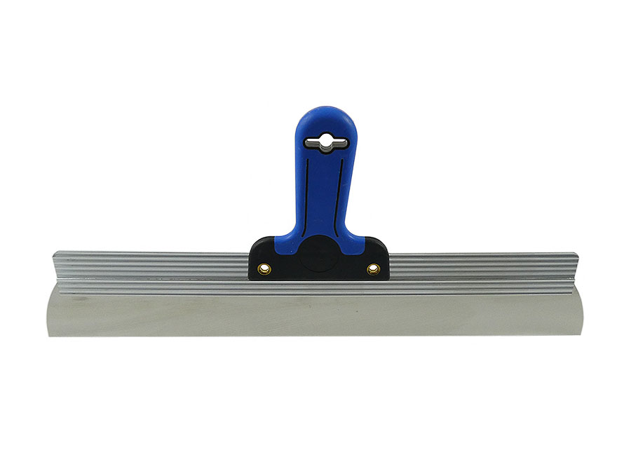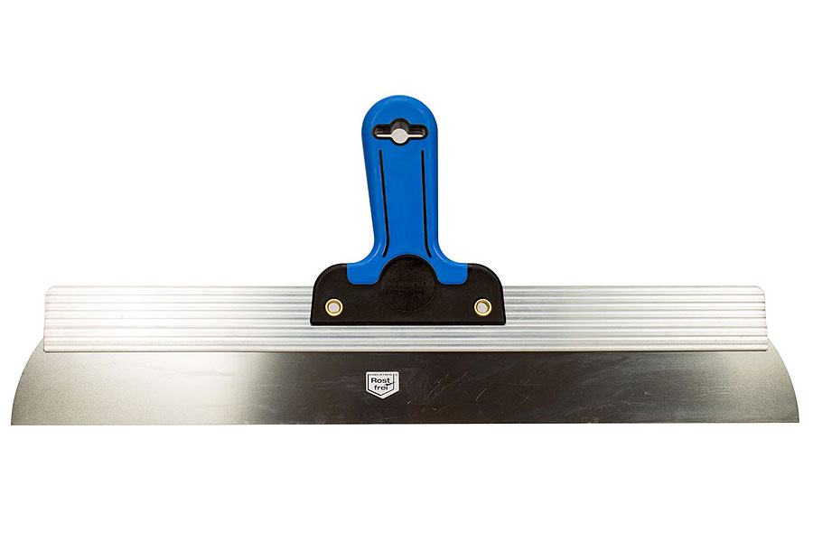 Der Flächenspachtel ist ein Rakel zum Auftragen von Spachtelmasse an der Fassade oder bei Fußbodenbeschichtungen. Dieses Dekorspachtel hat ein rostfreies Stahlblatt und einen Kunststoffgriff.