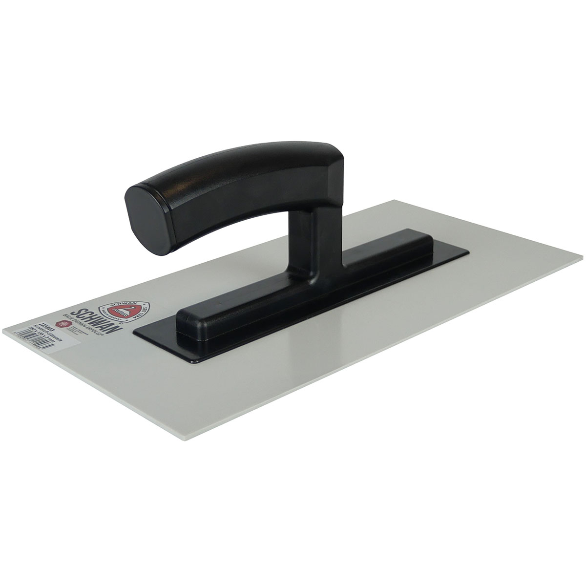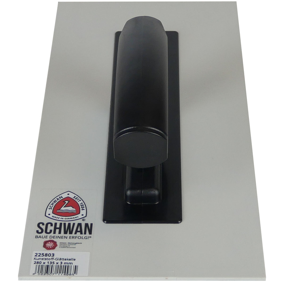 Die Glättekelle aus Kunststoff 280 x 140 mm eignet sich für Gipser, Stuckateure, Fliesenleger und Maurer. Die Kelle besteht aus schlagfestem Hart-PVC. Das Heft und der Steg sind ebenfalls aus PVC.