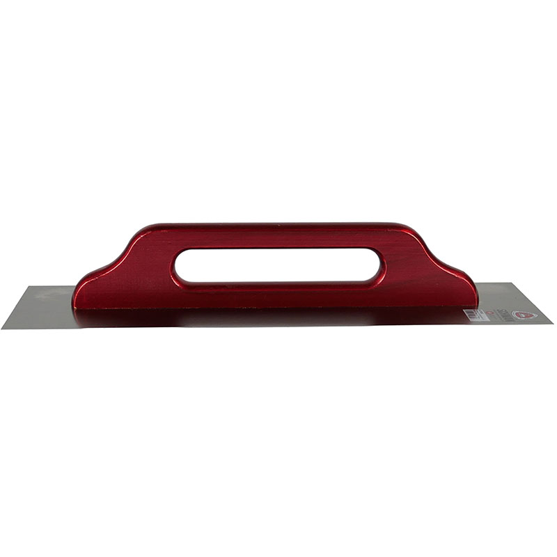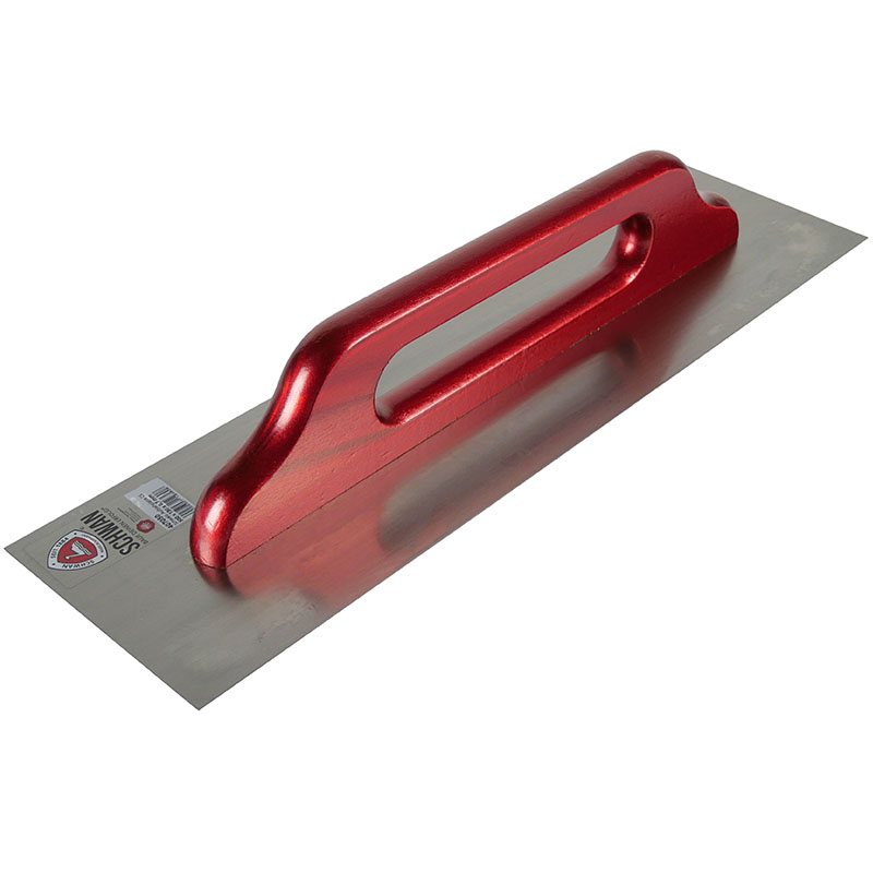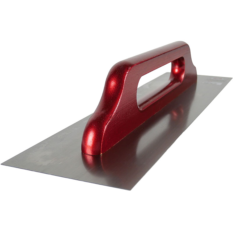 Die Schweizer Traufel / Glättekelle / Aufziehplatte 500 x 130 mm mit Holzgriff, Blatt aus gehärtetem Stahl bzw. rostfreiem Edelstahl mit einer Blattstärke von 0,7 mm.