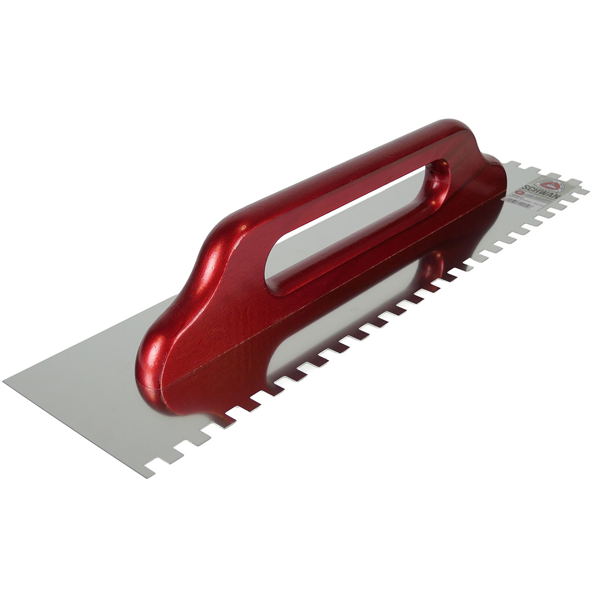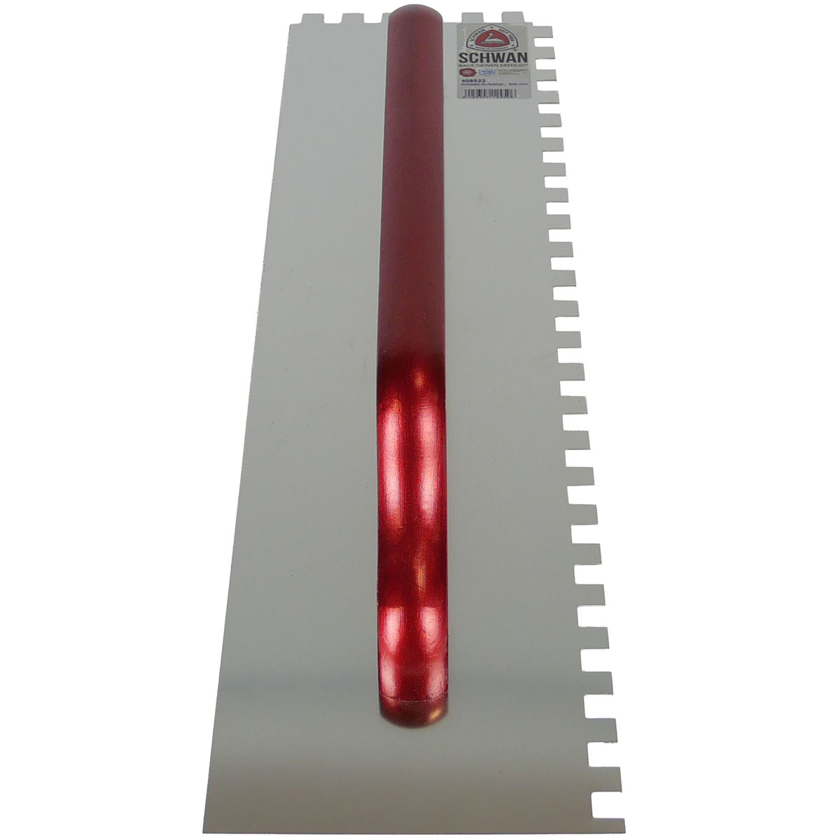 Die Schweizer Traufel wird vorwiegend für Putz- und Fliesenlegerarbeiten verwendet. Das rechteckige Stahlblech hat eine Abmessung von 500 x 130 mm. Der ergonomische handliche Holzgriff hat eine angenehme Trageform und ist bolzengeschweißt. Die Schweizer Traufel ist ebenso unter folgenden Begriffen bekannt: Schweizer Traufel, Abziehplatte, Glättescheibe und Glättekelle.